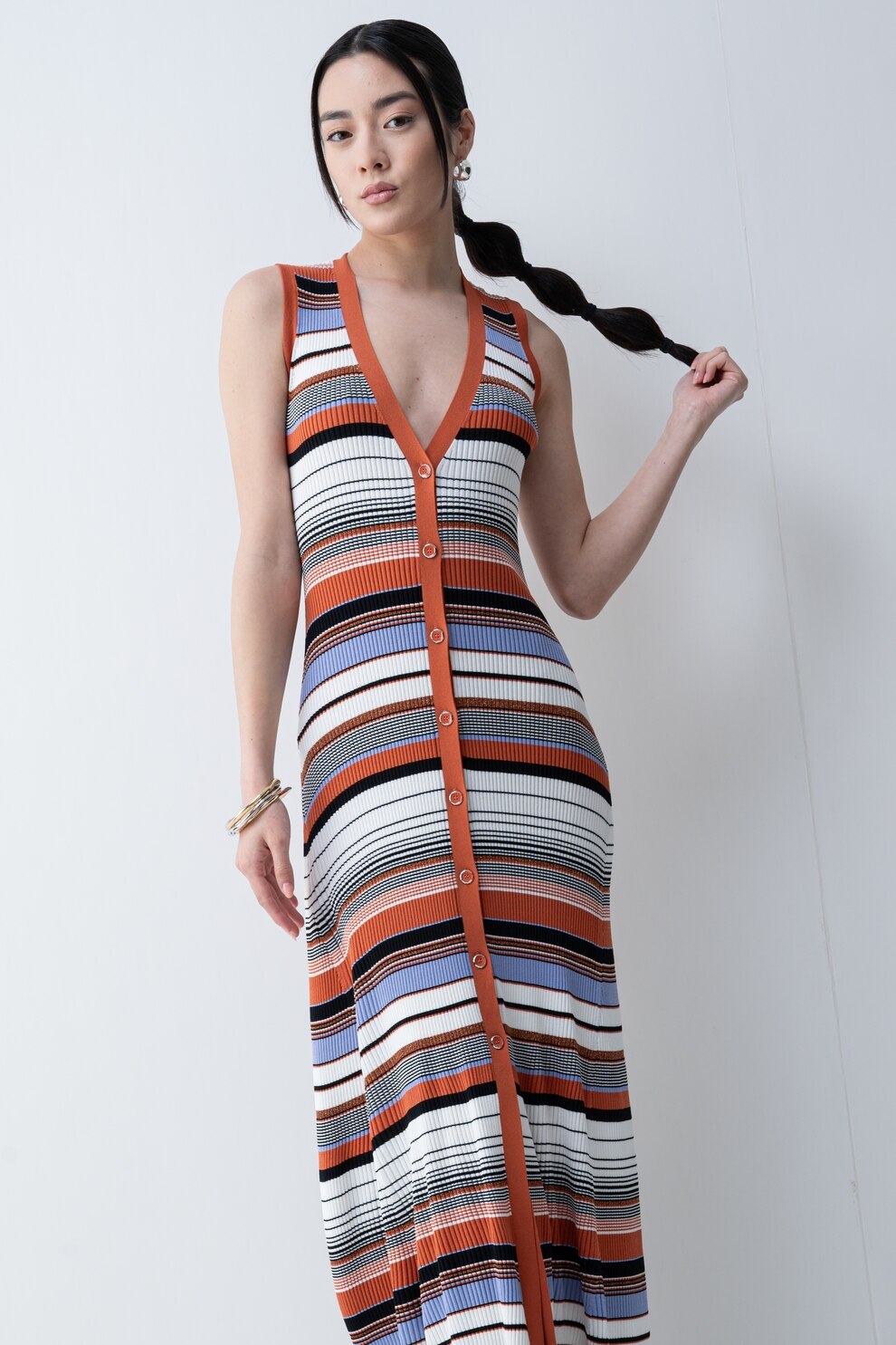 Liu Jo, Раирана шпиц рокля, Бял/Черен/Изгорен портокал