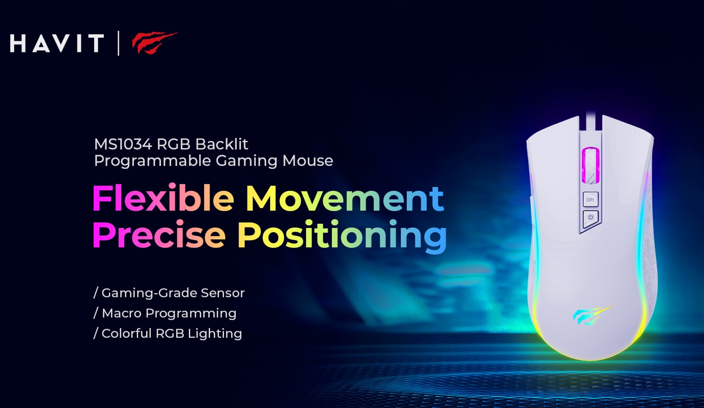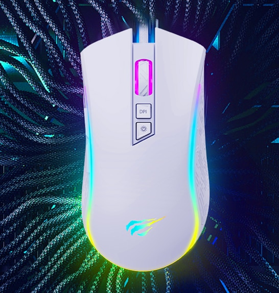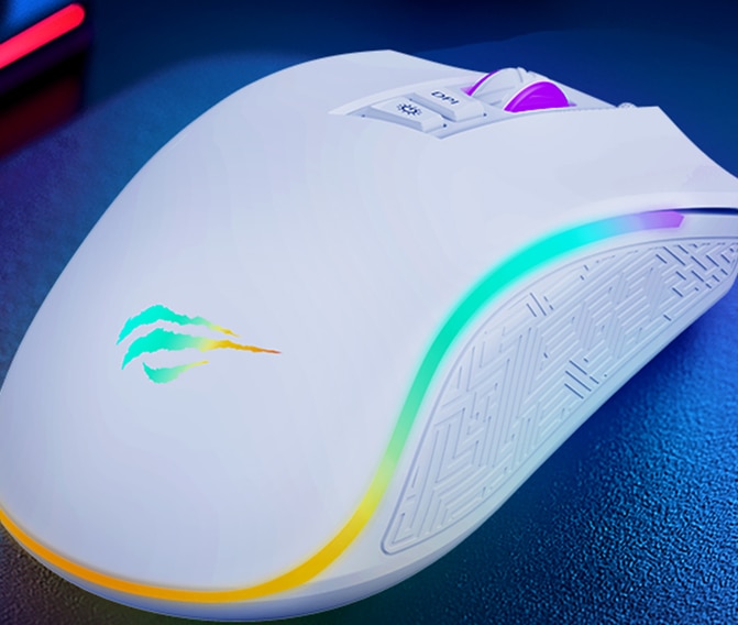 Мишка Gaming HAVIT MS1034, RGB, 4800 dpi, 7 бутона, USB, Бял