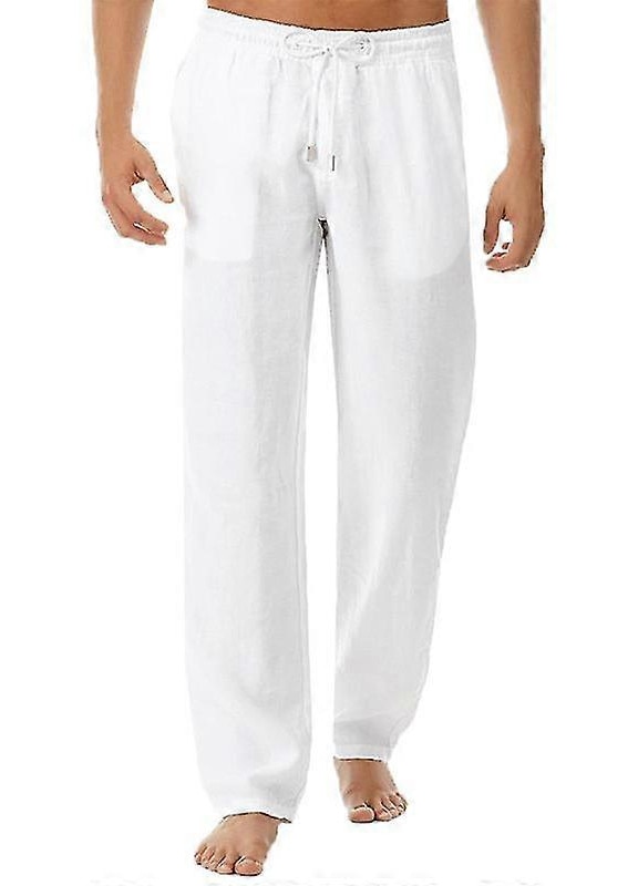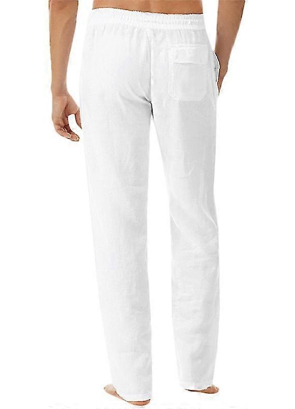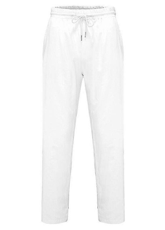 Мъжки панталони, еластична талия, ежедневен стил, памук и лен - 46795, Бял
