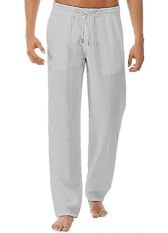 Мъжки панталони, еластична талия, ежедневен стил, памук и лен - 46795, Сив
