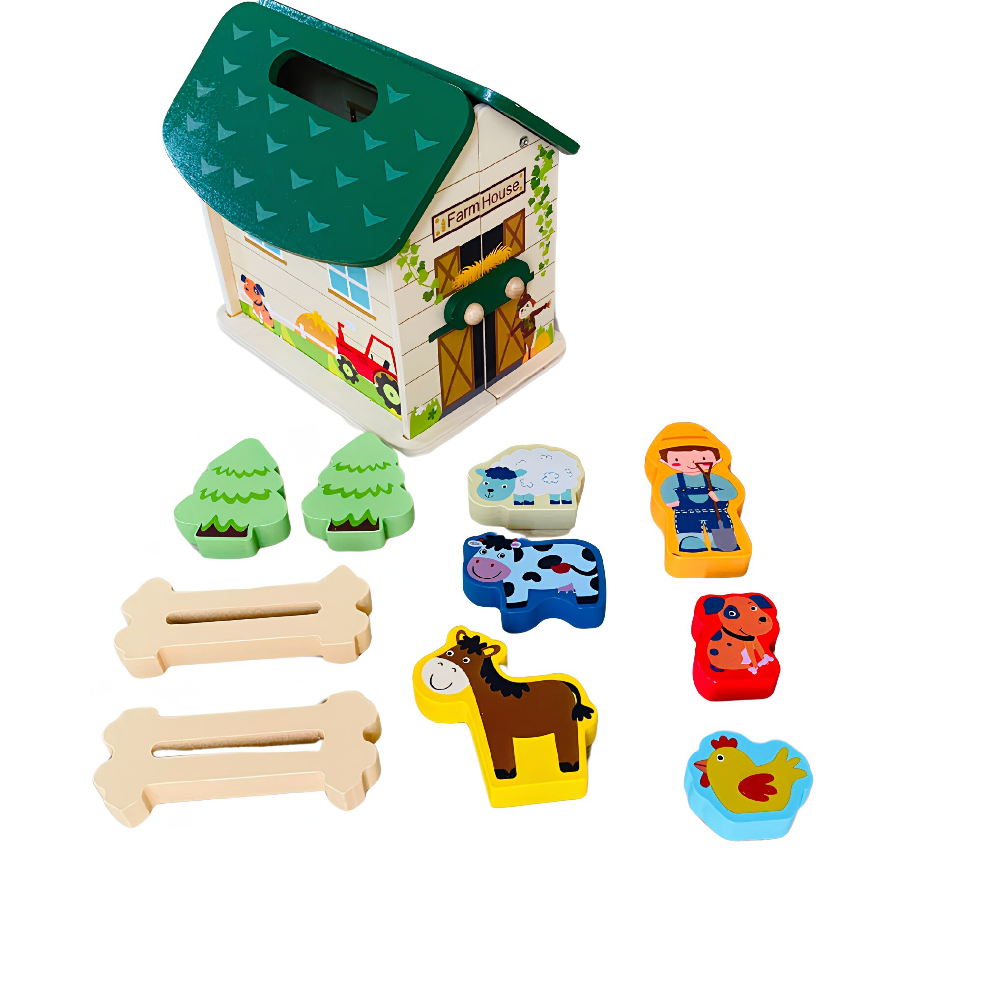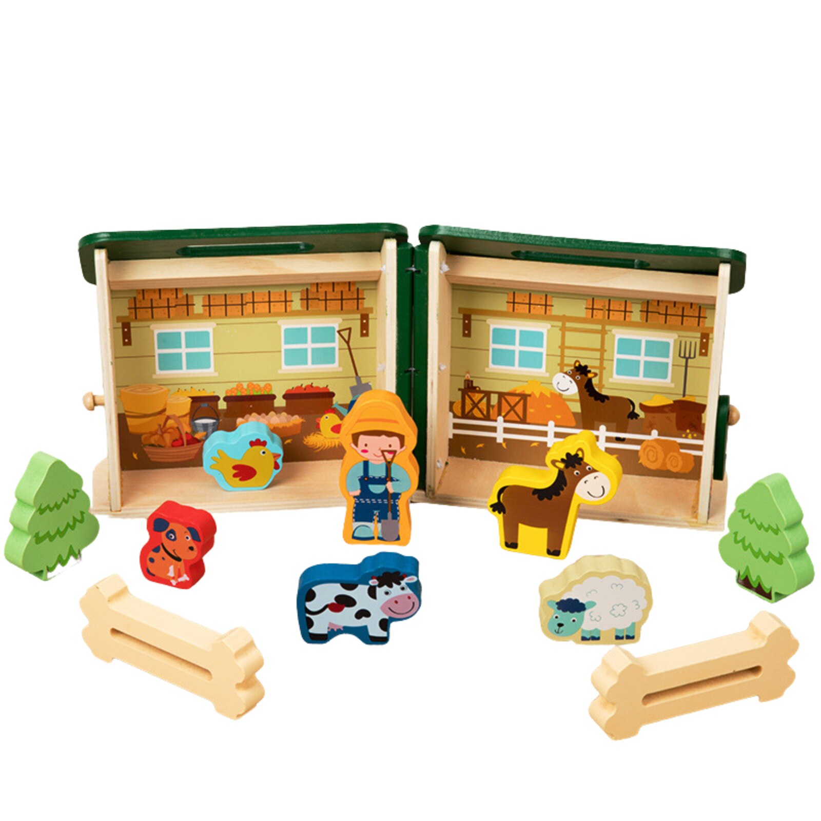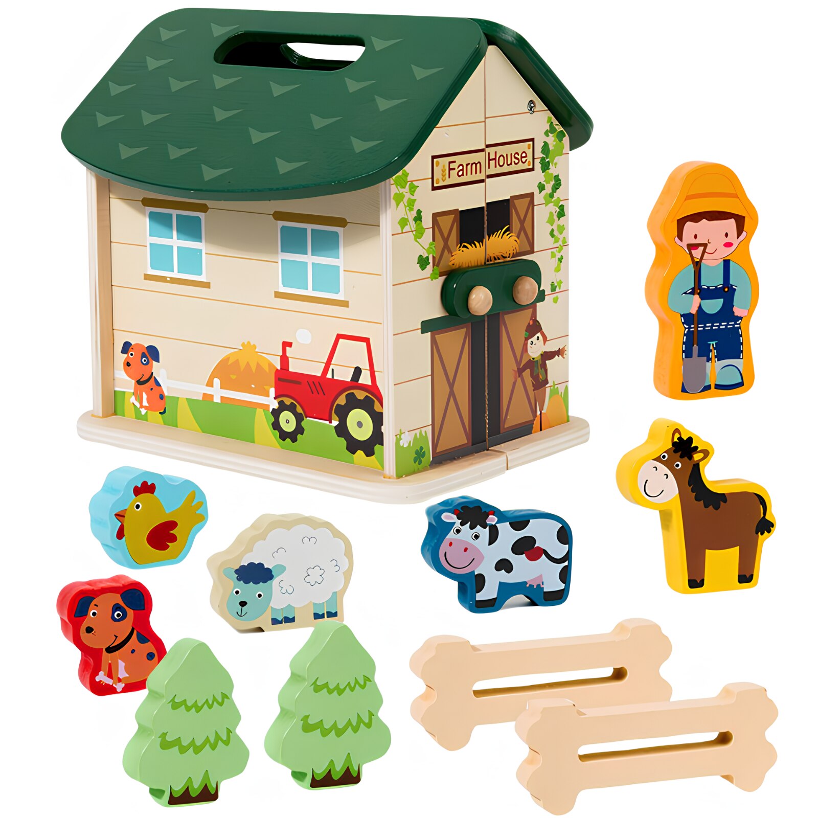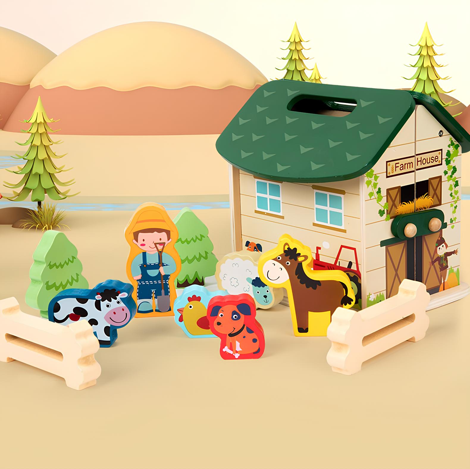 Образователна играчка Монтесори, за деца над 3 години, Дървена, Преносима селска къща с домашни животни, Вълшебна кутия Arelair, с играчки за сортиране и подреждане