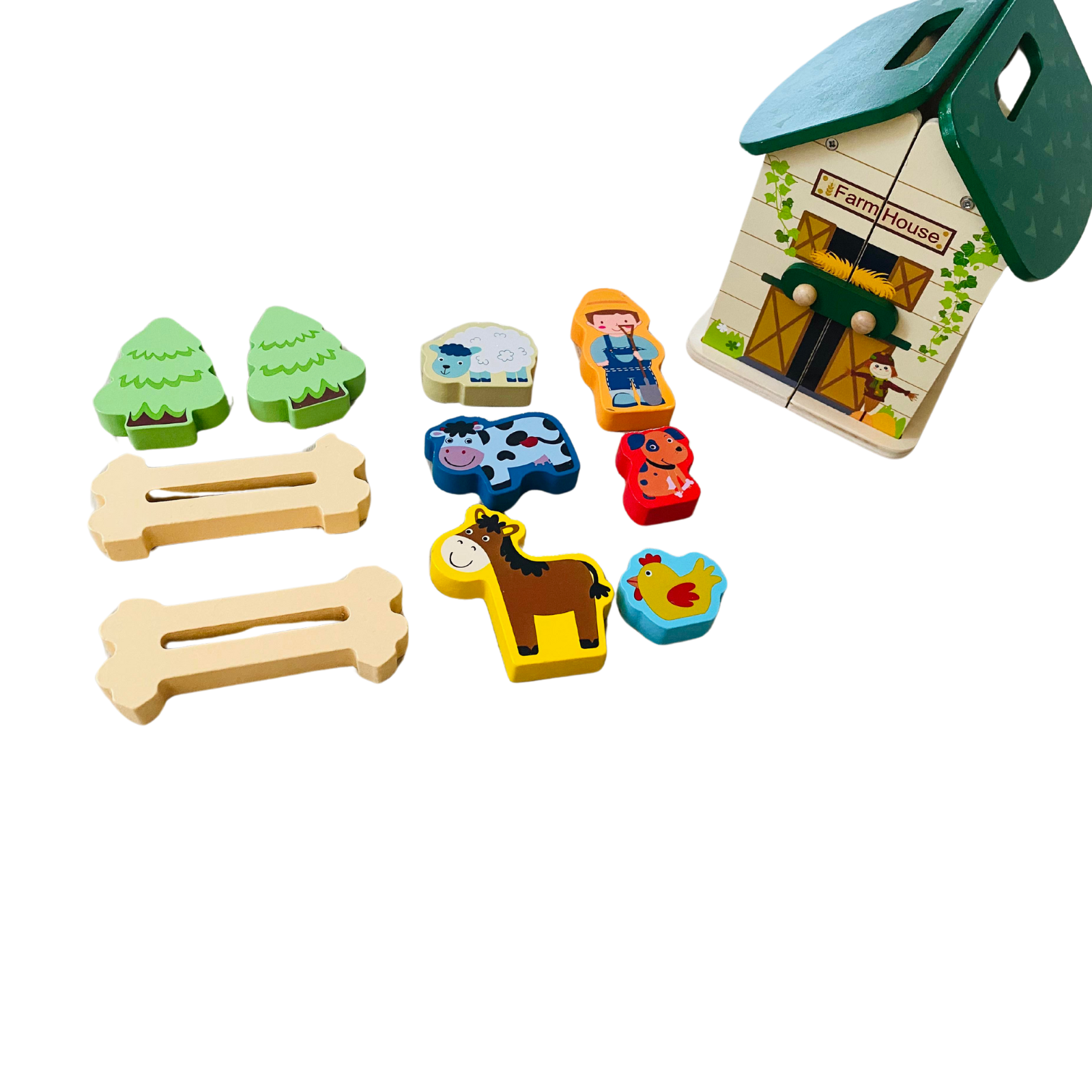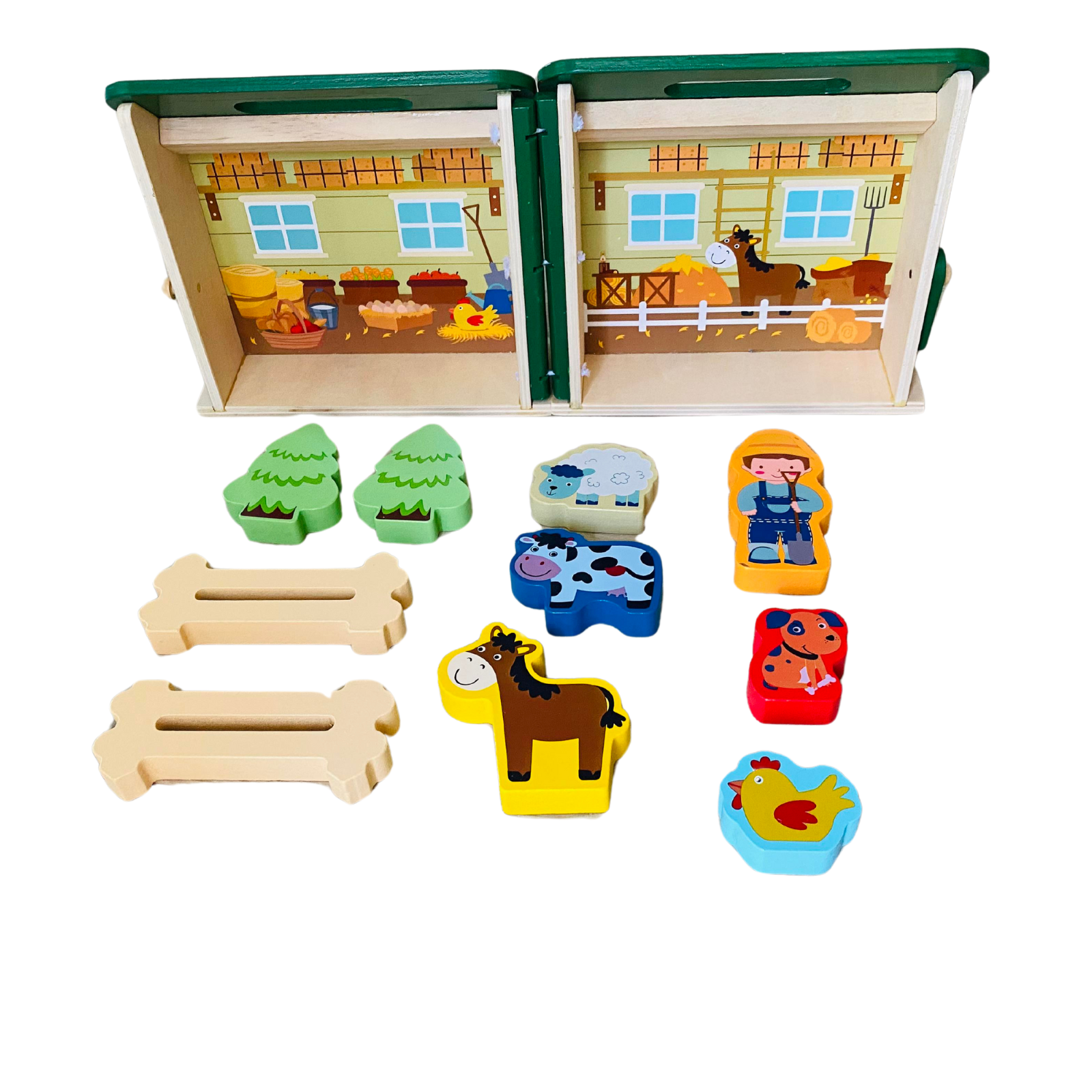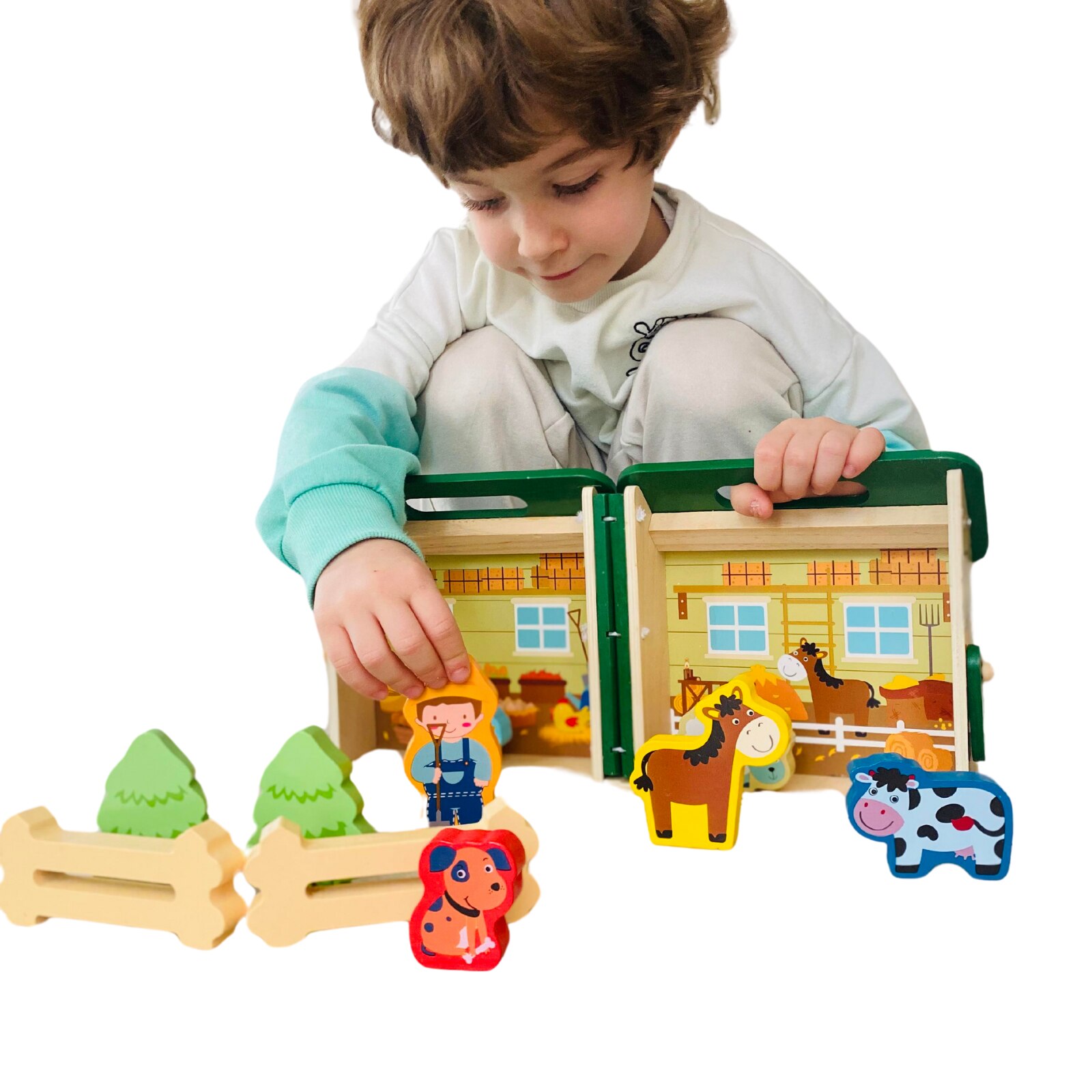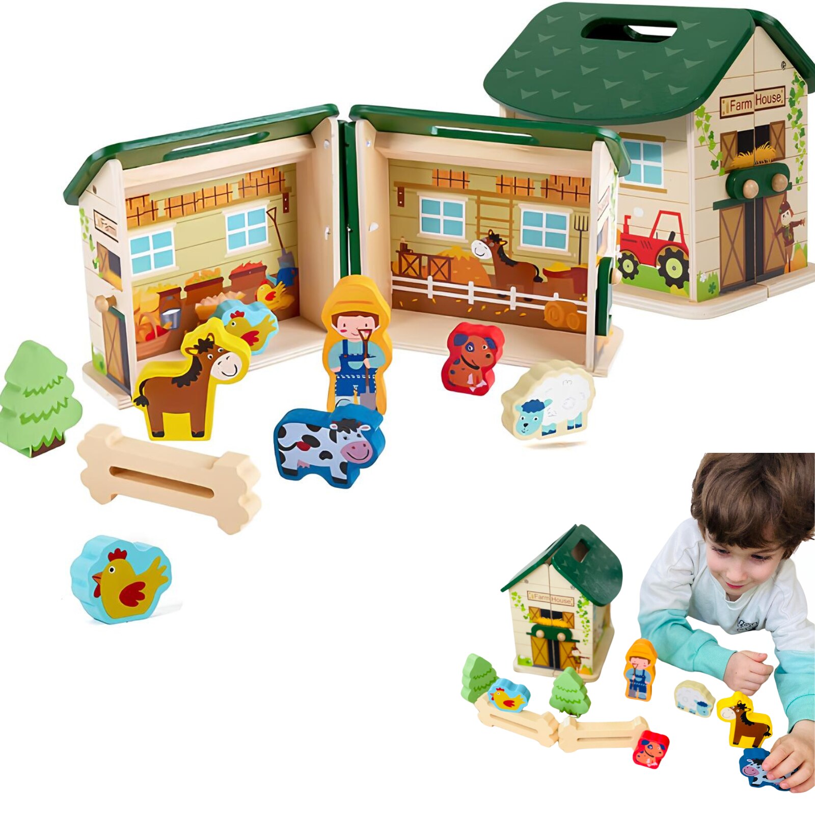 Образователна играчка Монтесори, за деца над 3 години, Дървена, Преносима селска къща с домашни животни, Вълшебна кутия Arelair, с играчки за сортиране и подреждане