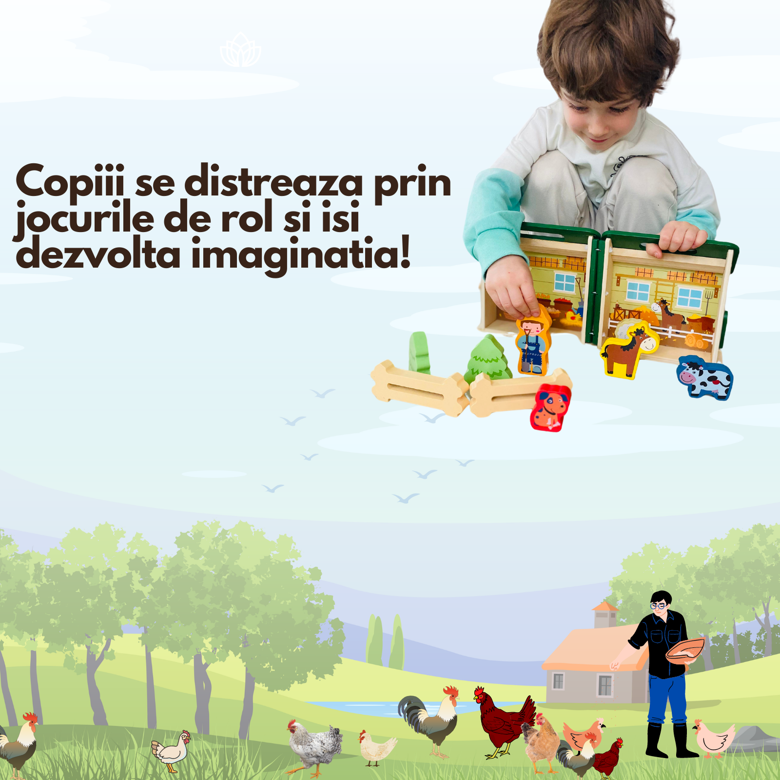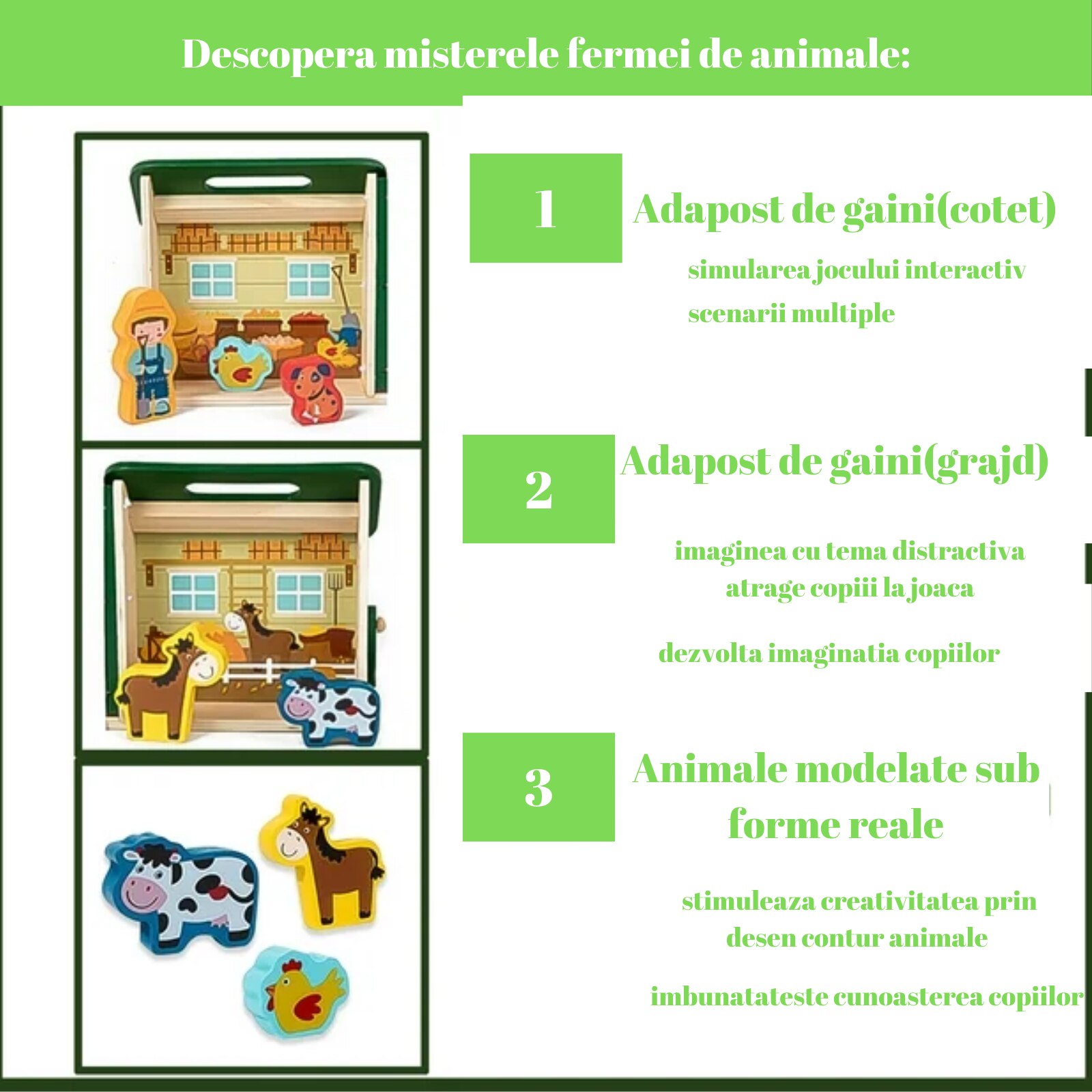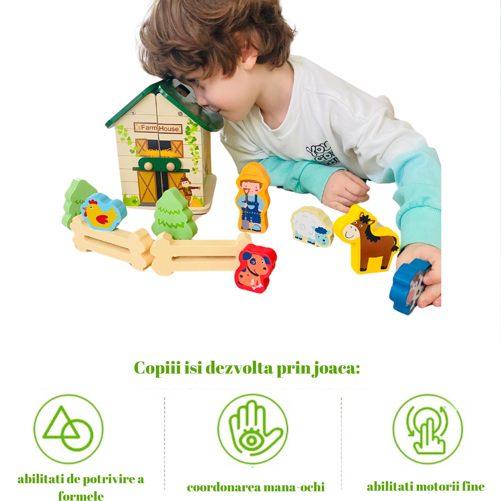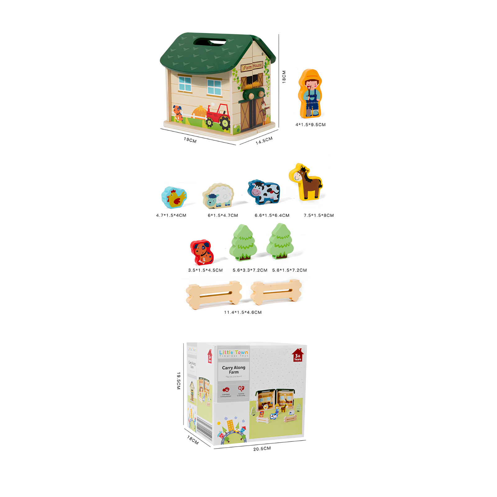 Образователна играчка Монтесори, за деца над 3 години, Дървена, Преносима селска къща с домашни животни, Вълшебна кутия Arelair, с играчки за сортиране и подреждане