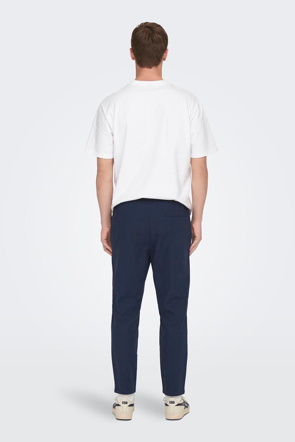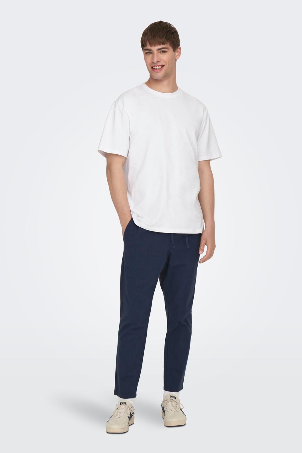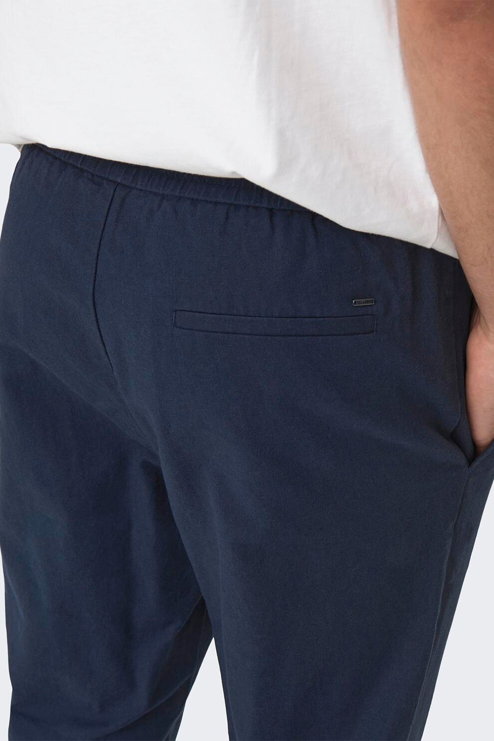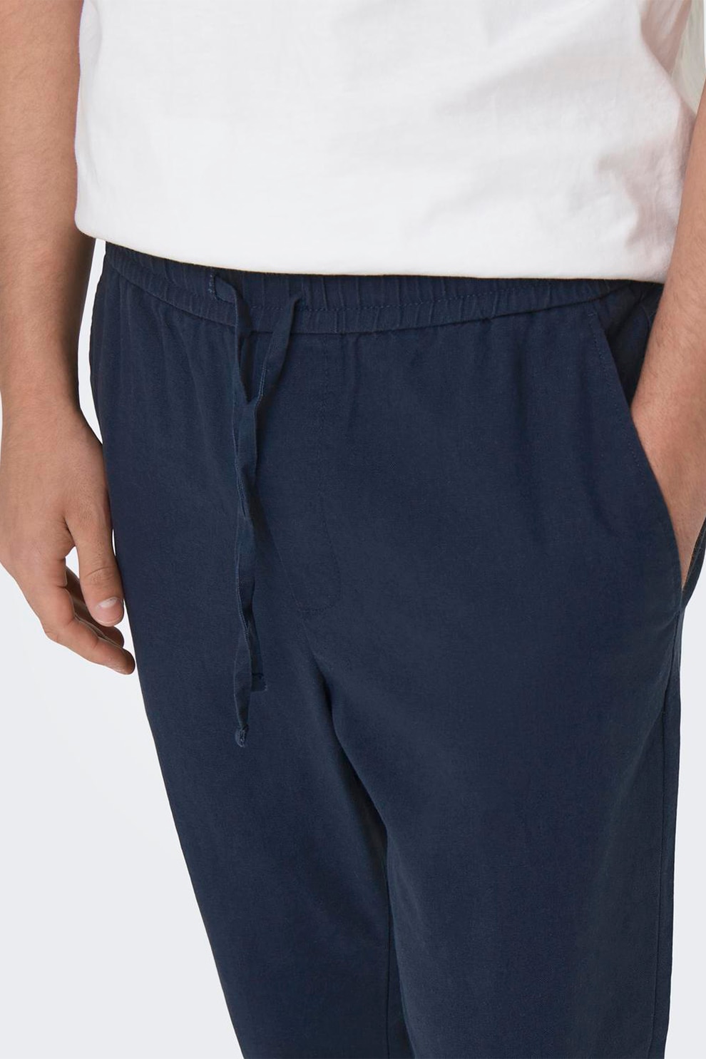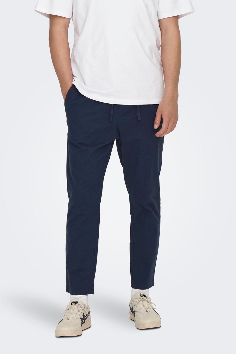 Only & Sons, Панталон с лен и стеснен крачол, Тъмносин