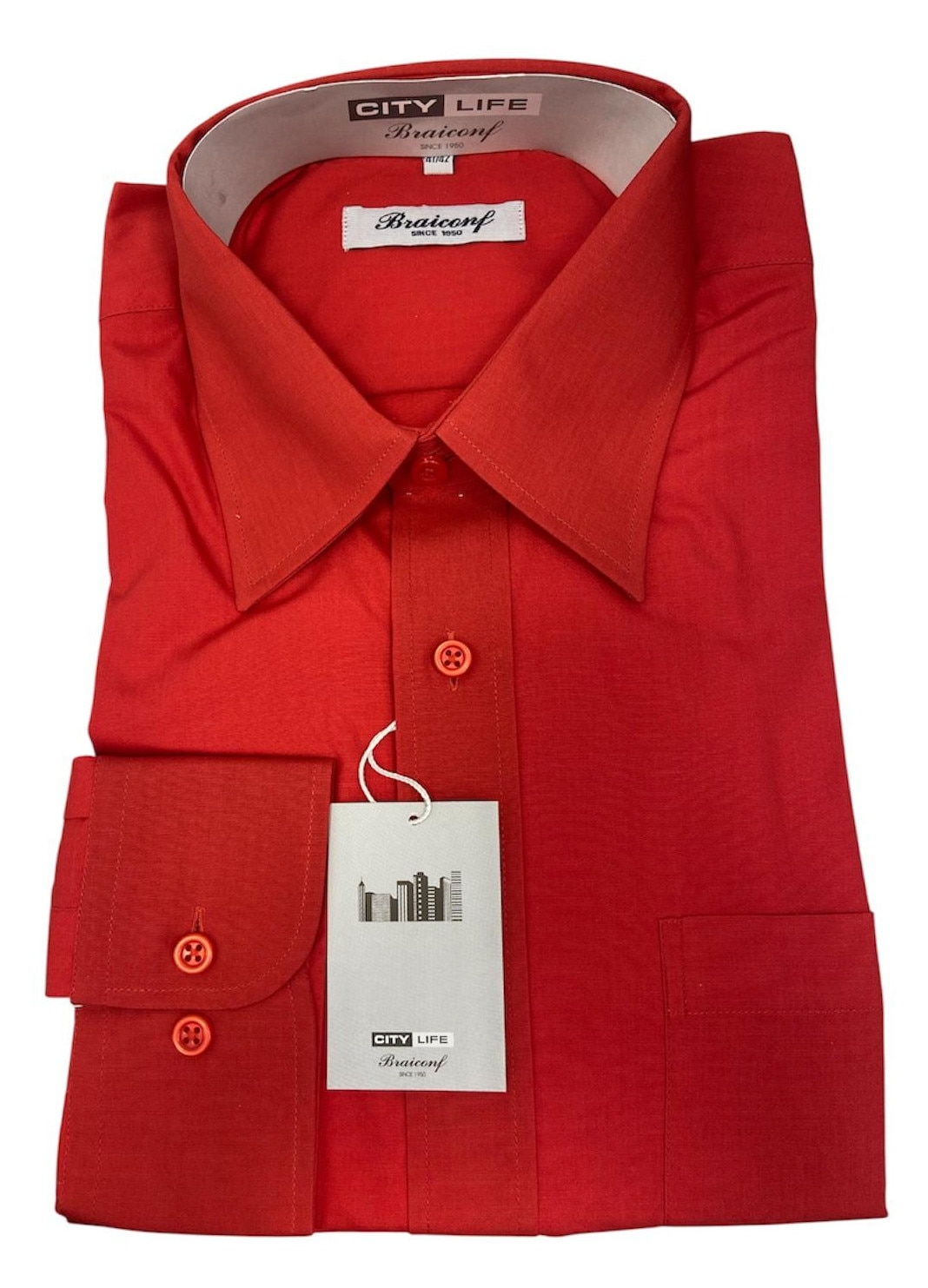 Оранжева мъжка риза, с дълъг ръкав, памук-полиестер, Червен