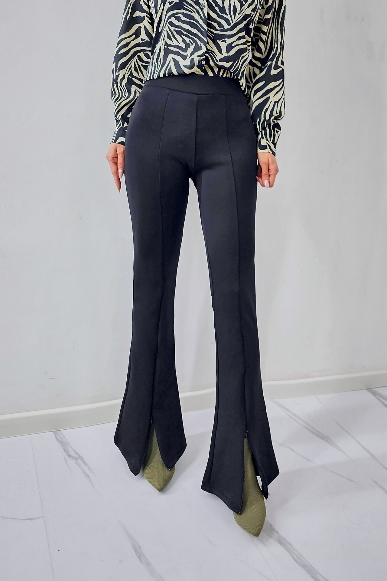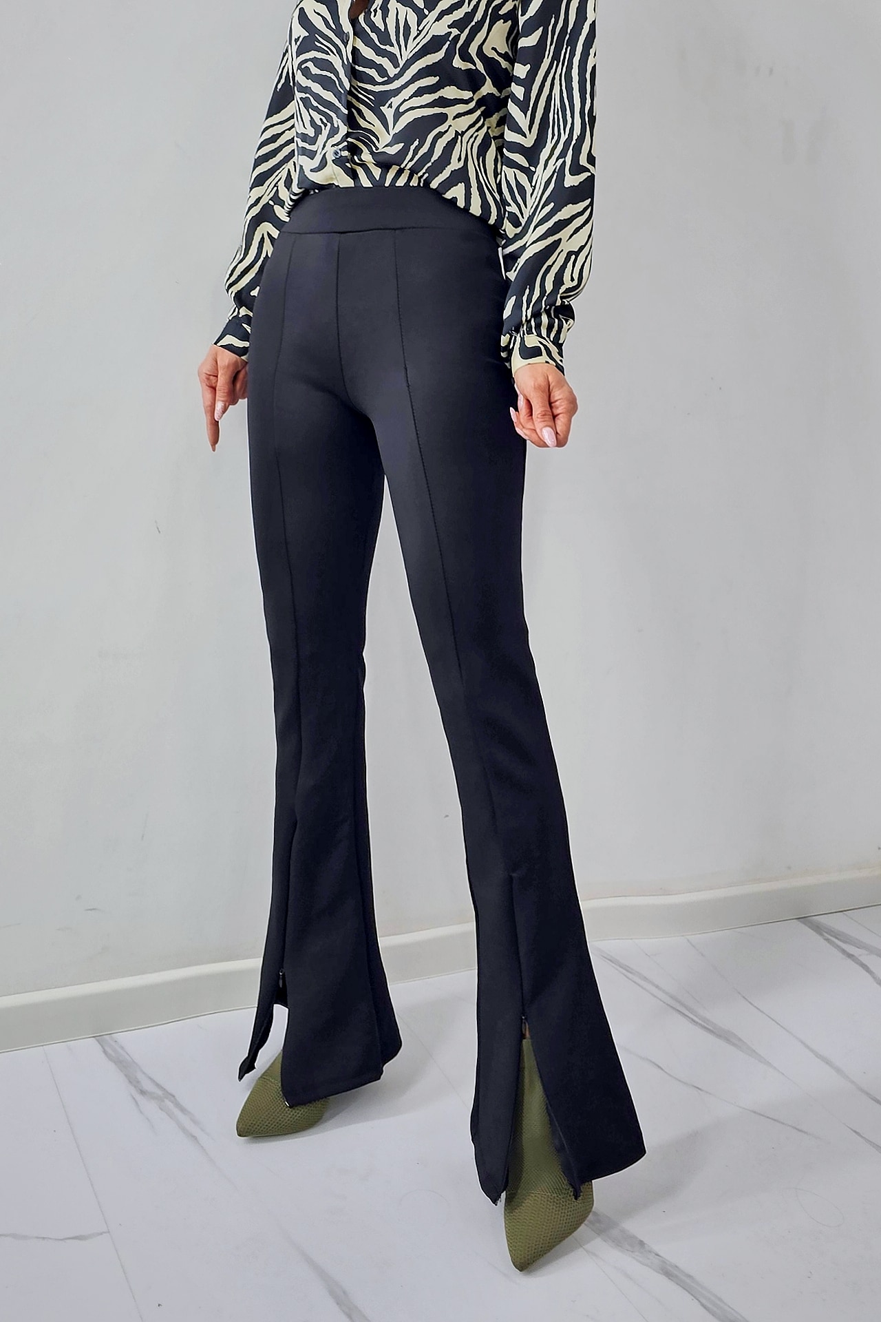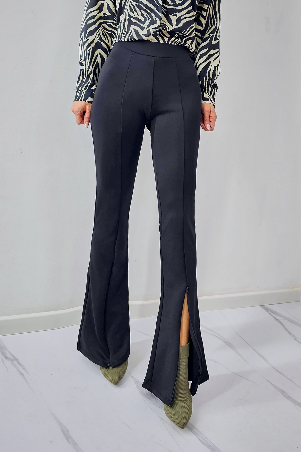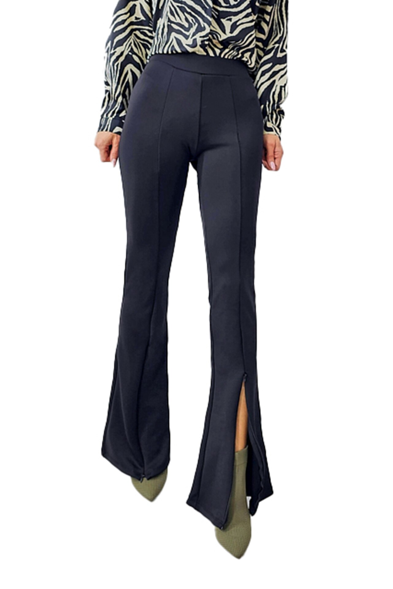 Панталон Elan, Широк крачол, С цип на чатала и ластик на талията, Черен