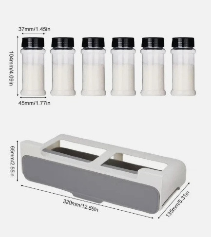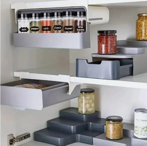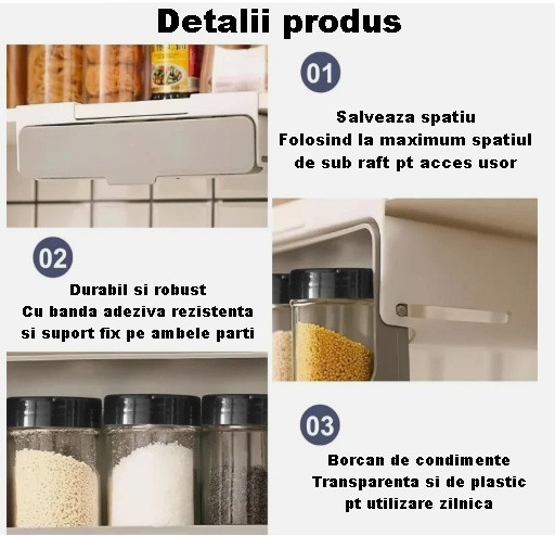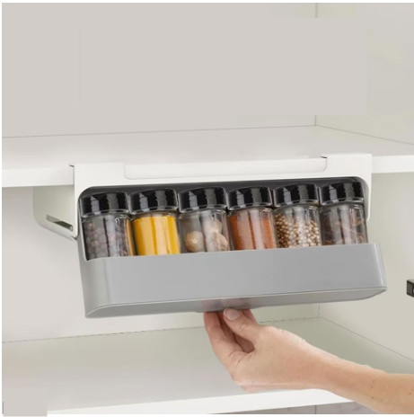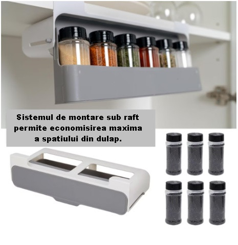 Поставка за подправки RAPIDUT, Пластмаса, 6 буркана, Окачена под рафт, Сгъваем, 3M Самозалепващ се, 32 x 13,5 x 9,5 см, Бял/Сив