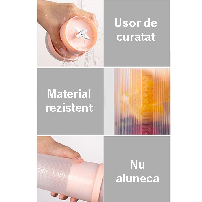Преносим мини блендер JU4000 SIKS, Капацитет 300 ml, USB зареждане, 50W, Розов