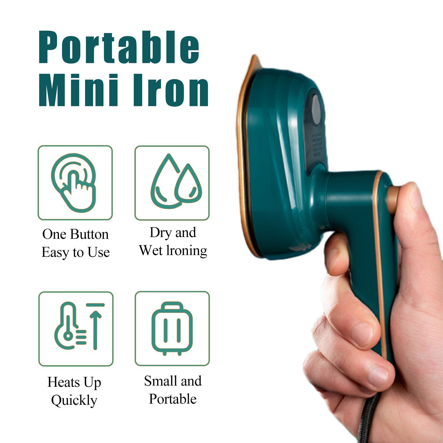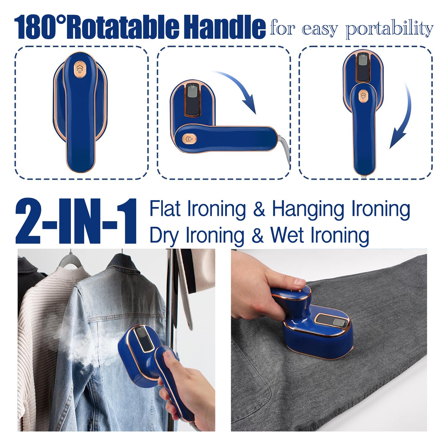 Преносима парна ютия, 180°, синя, 11.5x6.2x8.4cm