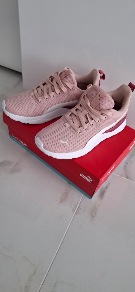 Puma - Мрежести спортни обувки Anzarun Line с еко кожа, Черен/Бледо розово