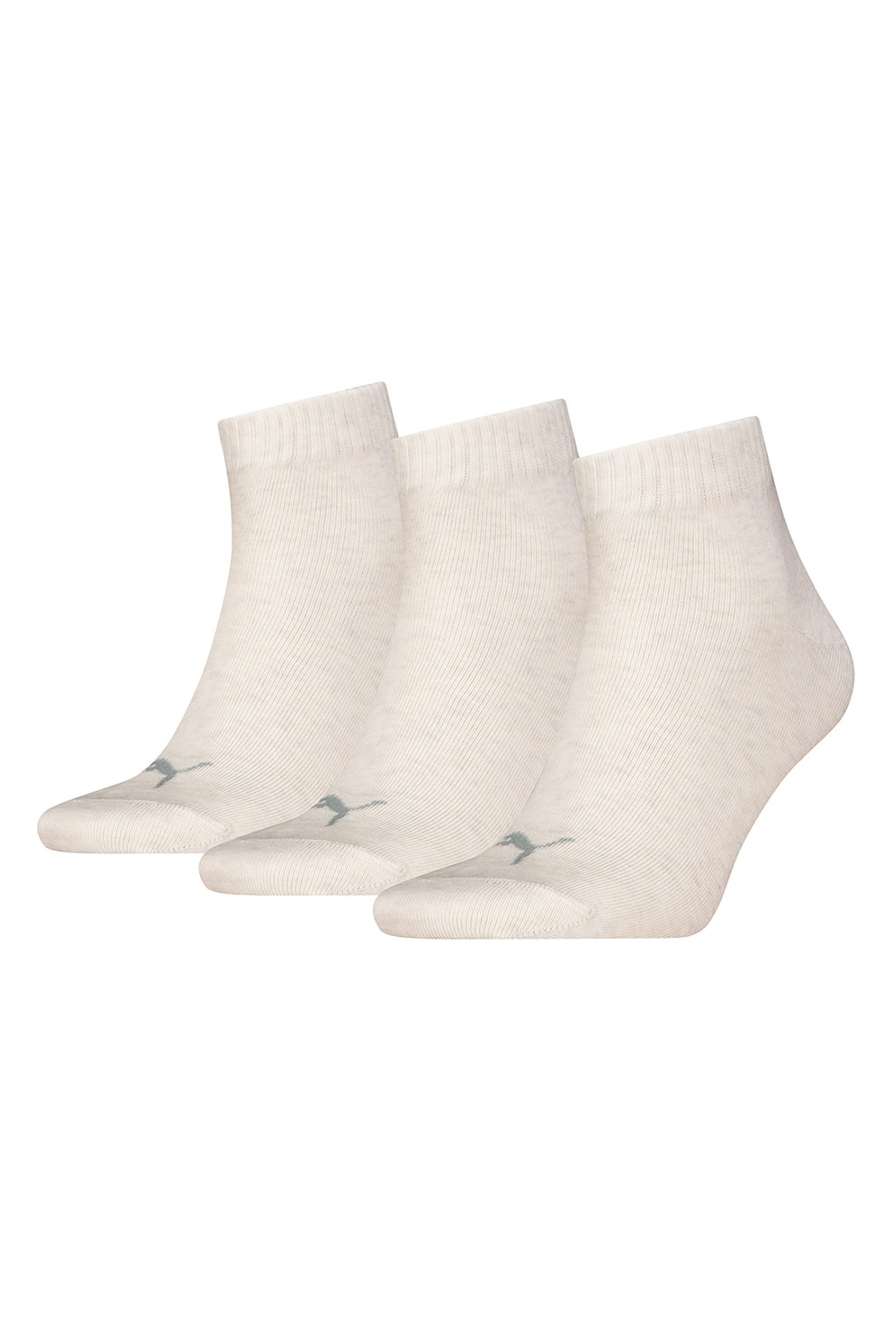 Puma - Унисекс къси чорапи с лого - 3 чифта, Мръснобял