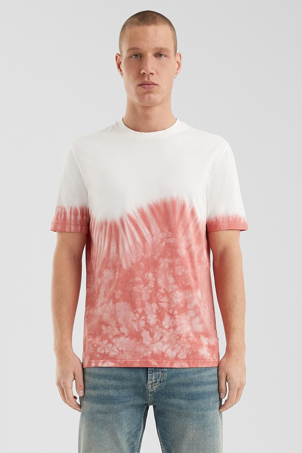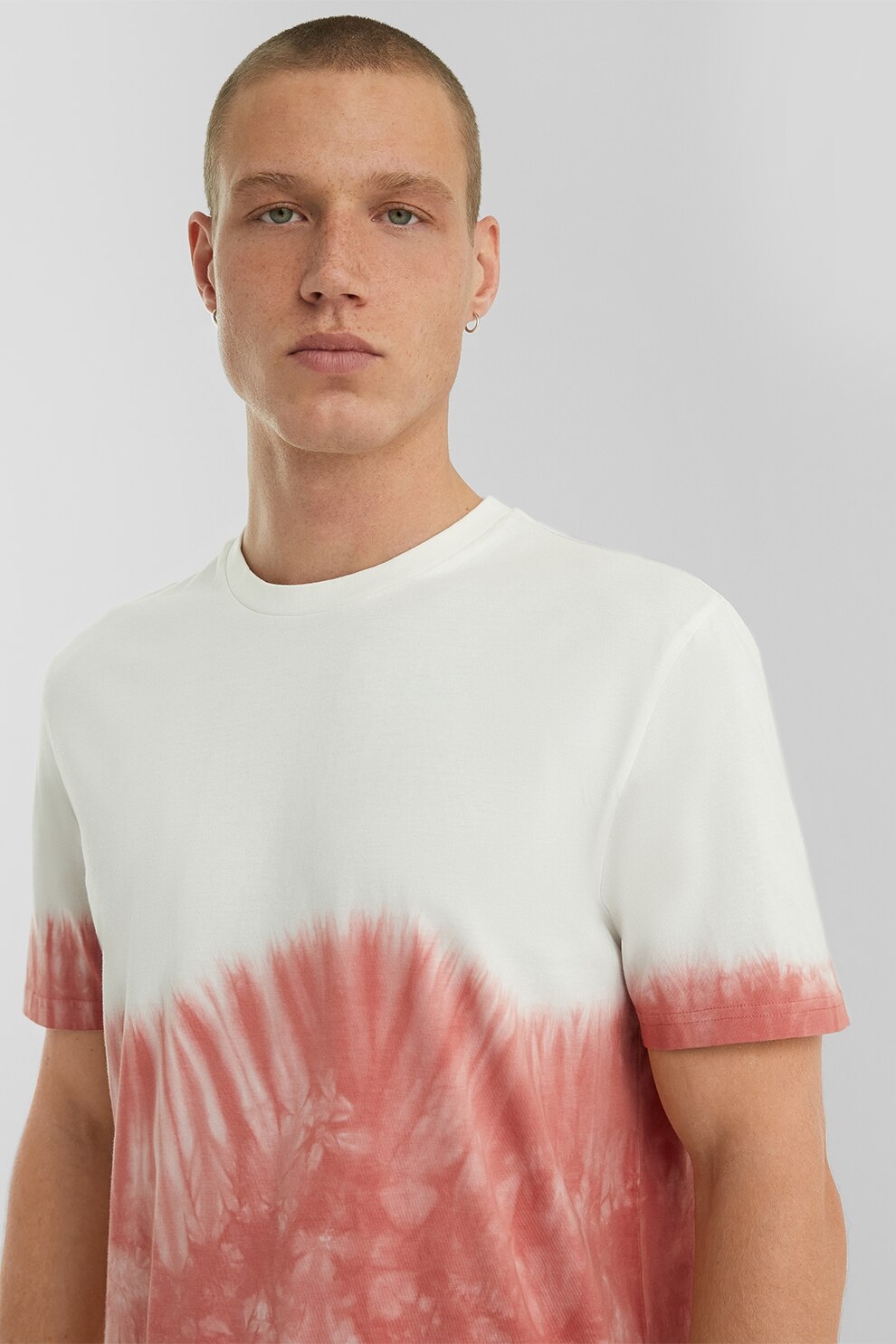 QS, Тениска с хоризонтален меланж и овално деколте, Червен/Бял