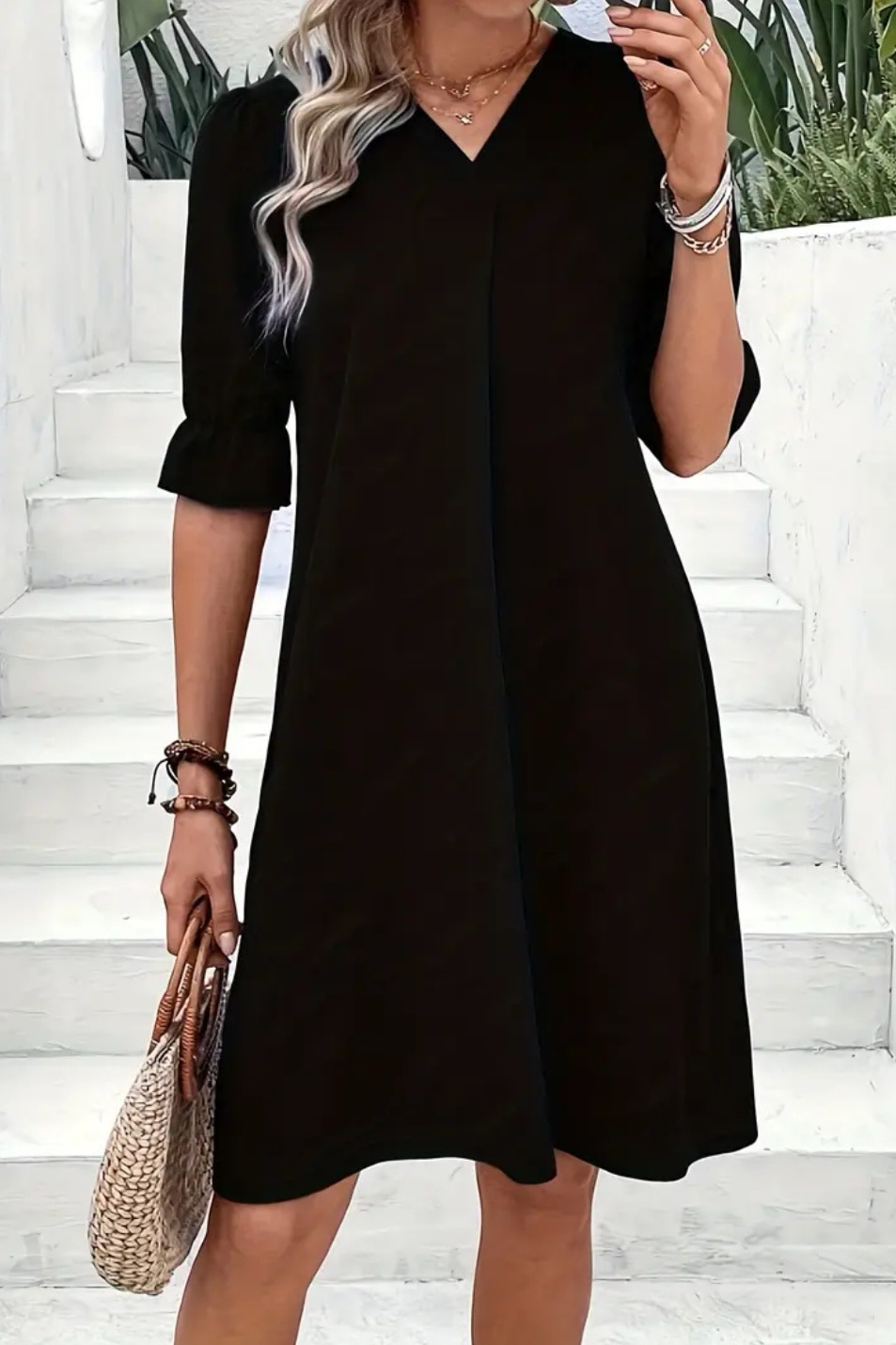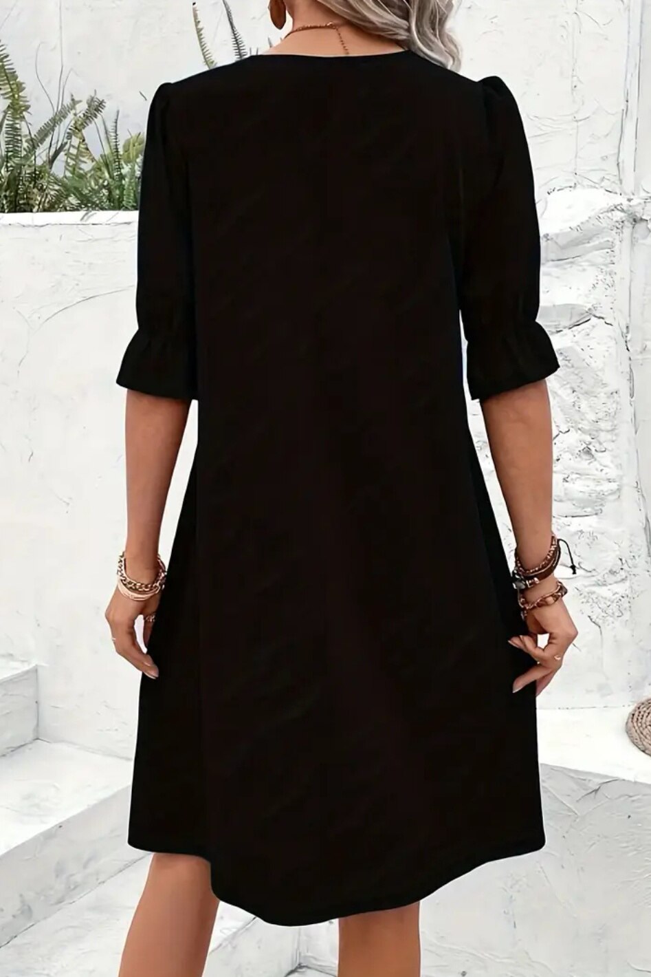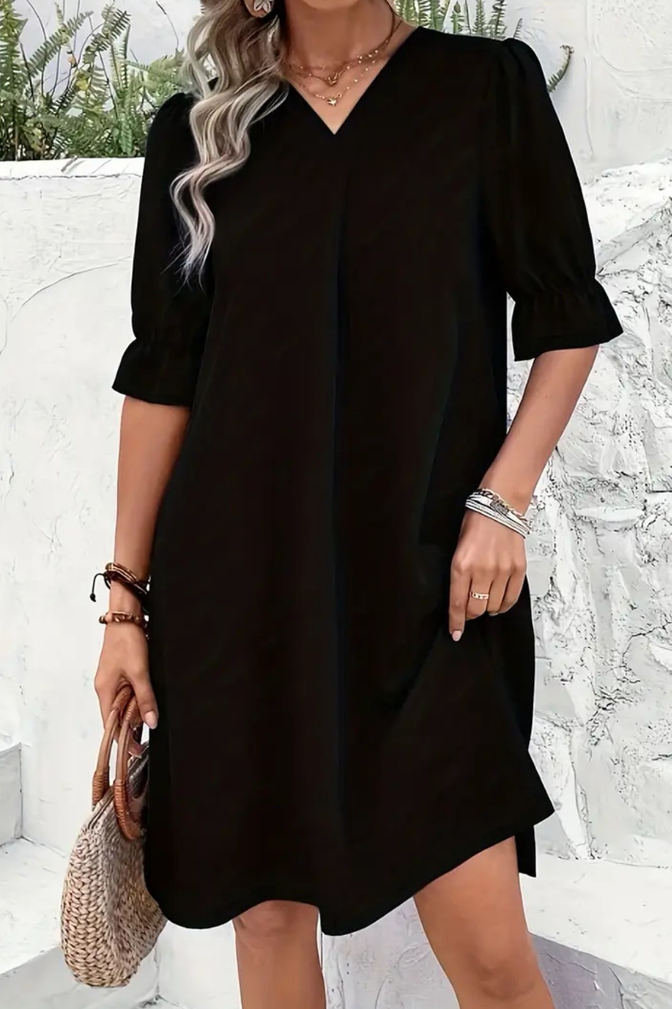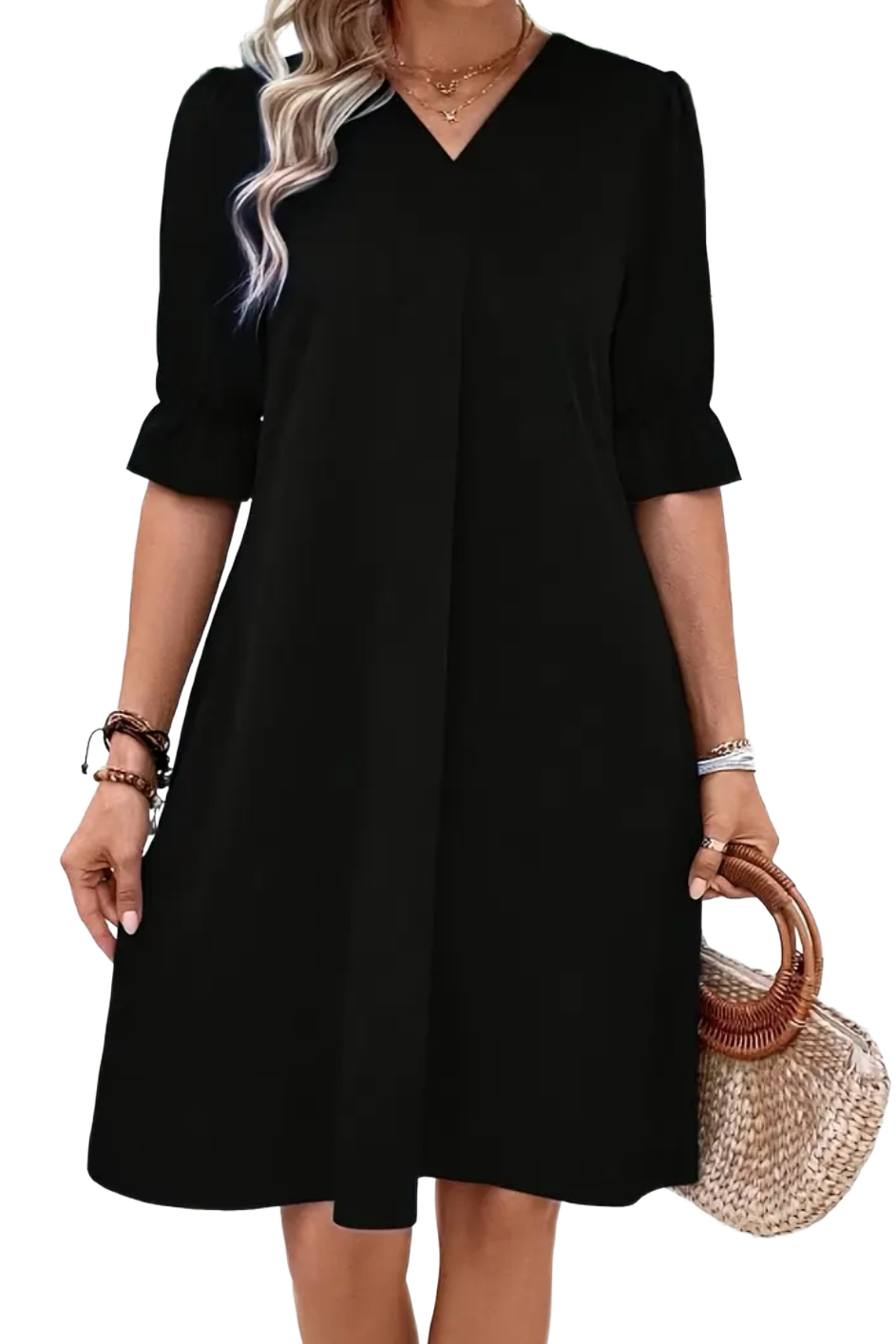 Рокля с 3/4 ръкав и надут подгъв, Черен