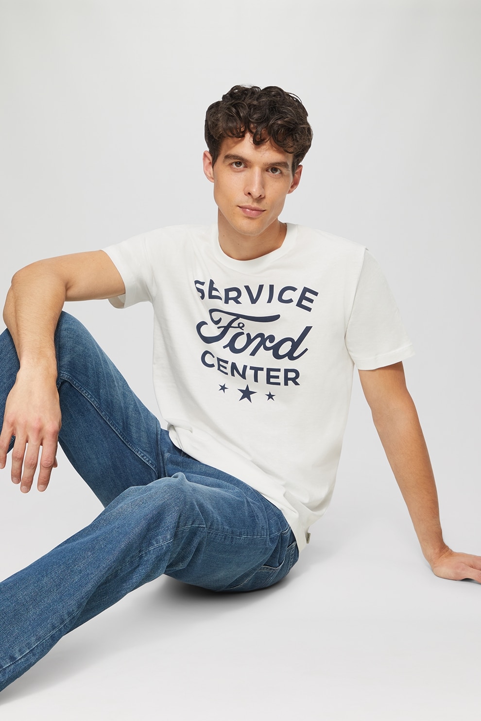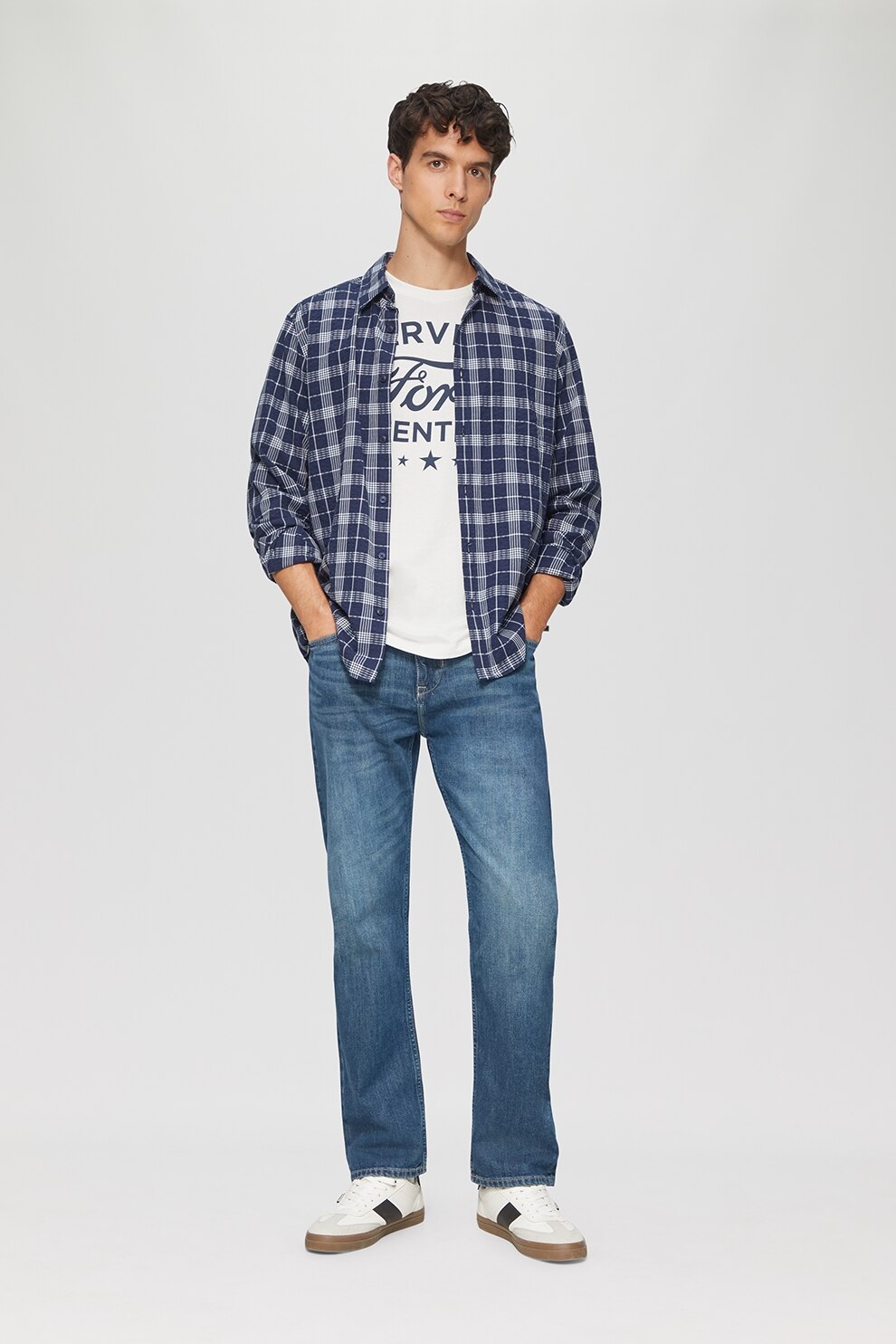 s.Oliver, Тениска с надпис отпред, Бял/Ултрамарин синьо