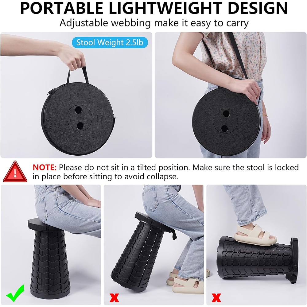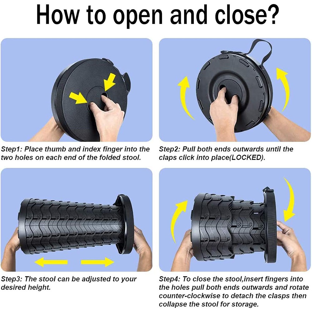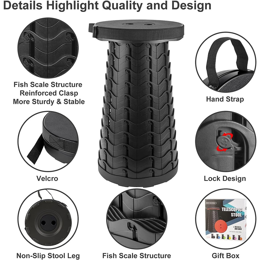 Сгъваем телескопичен стол, Ronyes®, разтегната височина 45 см, черен