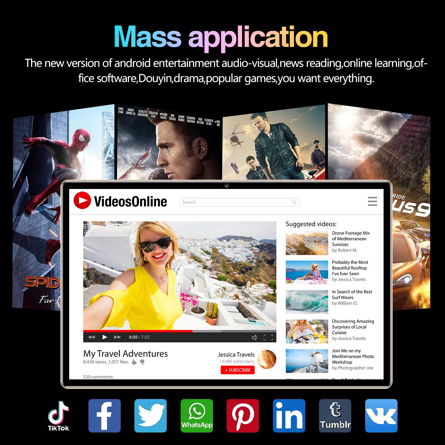 | Видео възпроизвеждане | AVI, 3GP, MP4, RM, RMVB, FLV, MKV, MOV, VOB, DAT, WMV |
