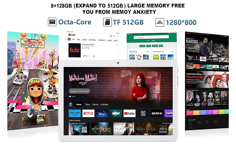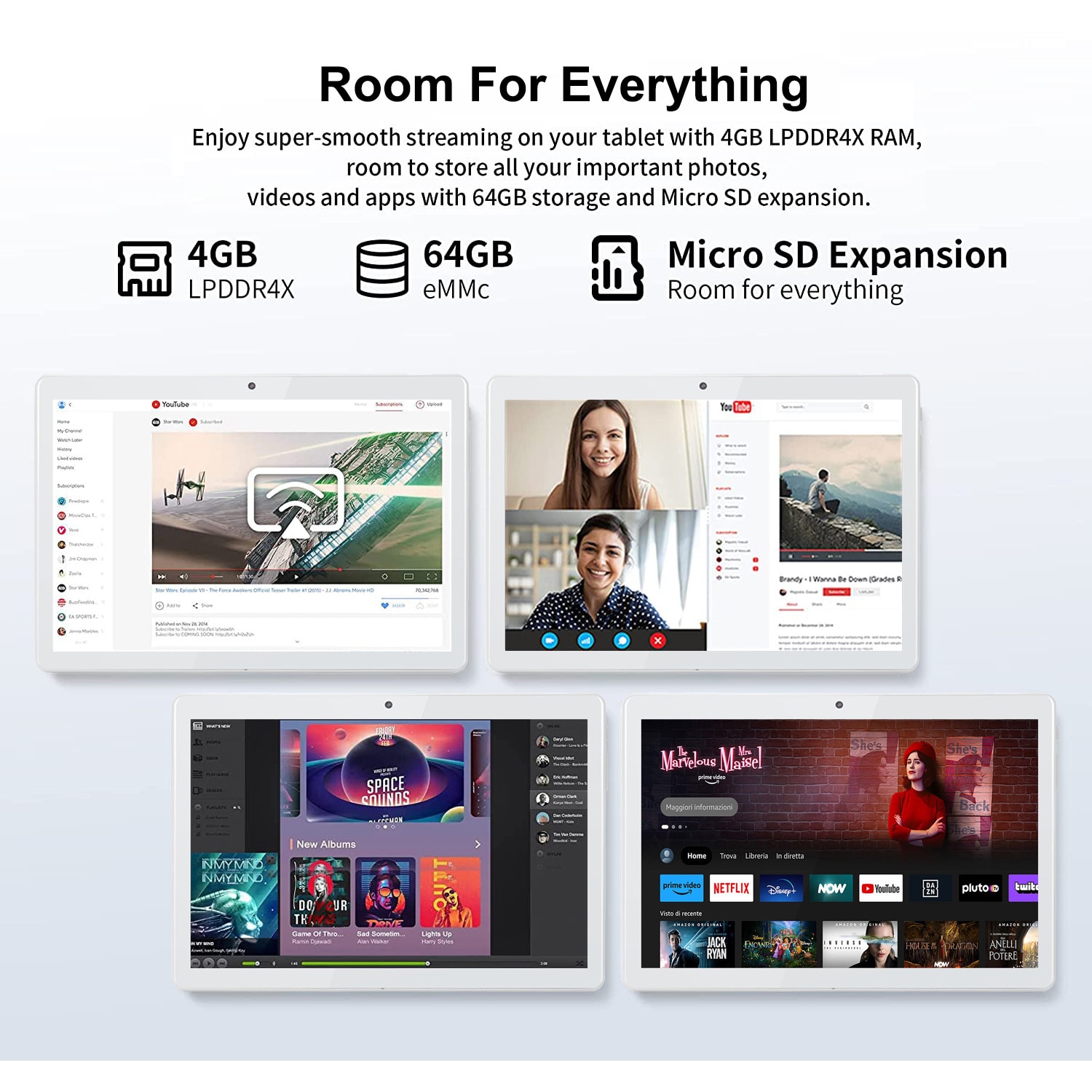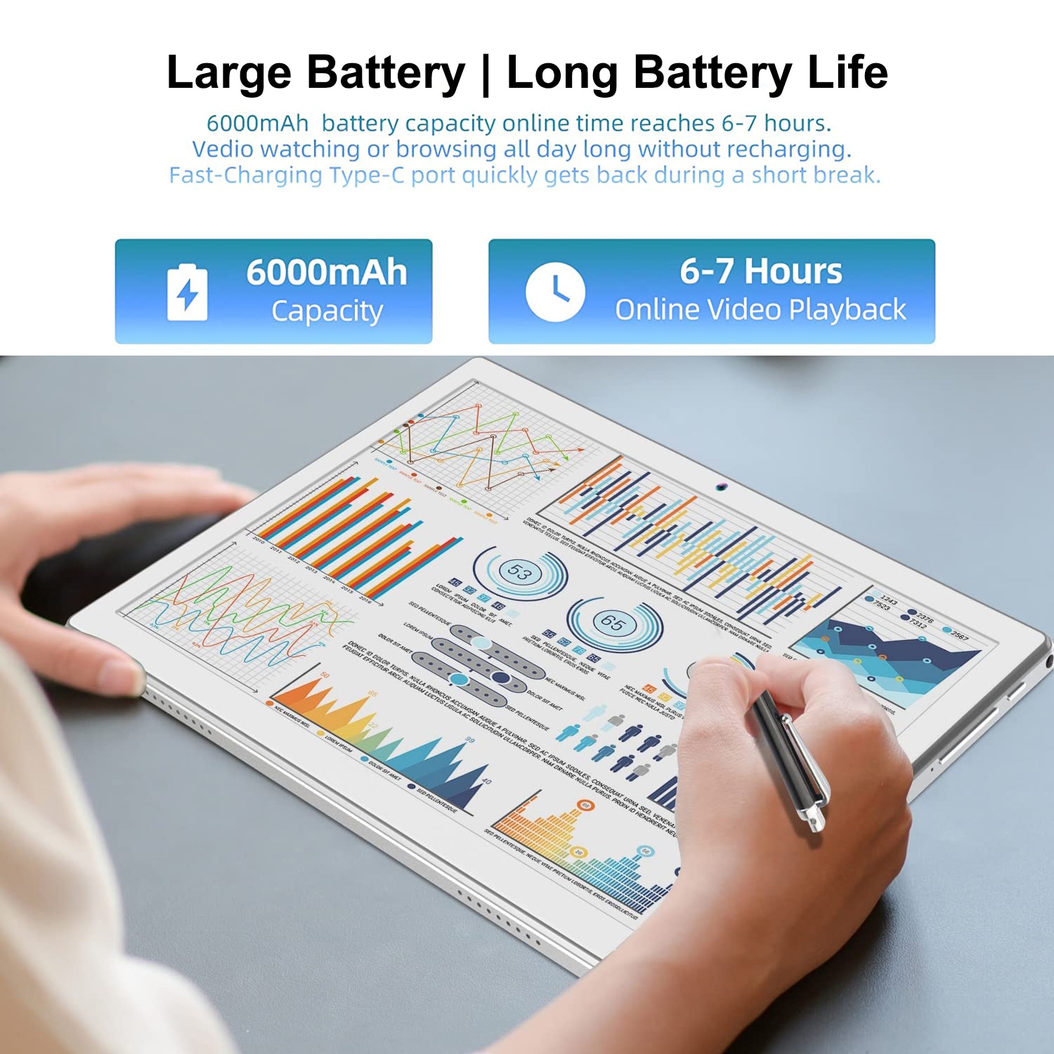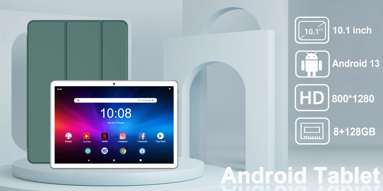 Таблет 10 инча, Android 13, 8GB RAM+128GB ROM, Двойна камера, Батерия 6000mAh, Сребрист