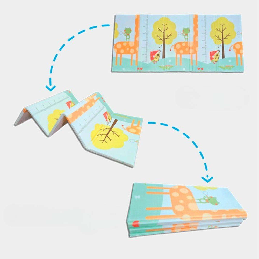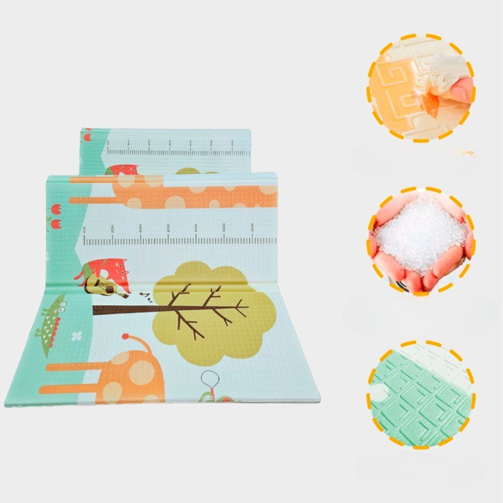 Термоподложка за игра за деца, двулицева, Optim Solution, Модел с лисици и автомобилна писта, с дунапрен, водоустойчива, против хлъзгане, 200 см x 180 см x 0,8 см, многоцветна