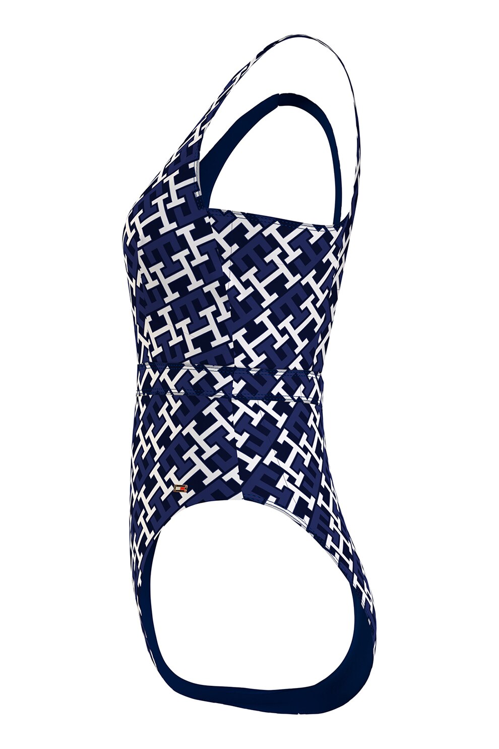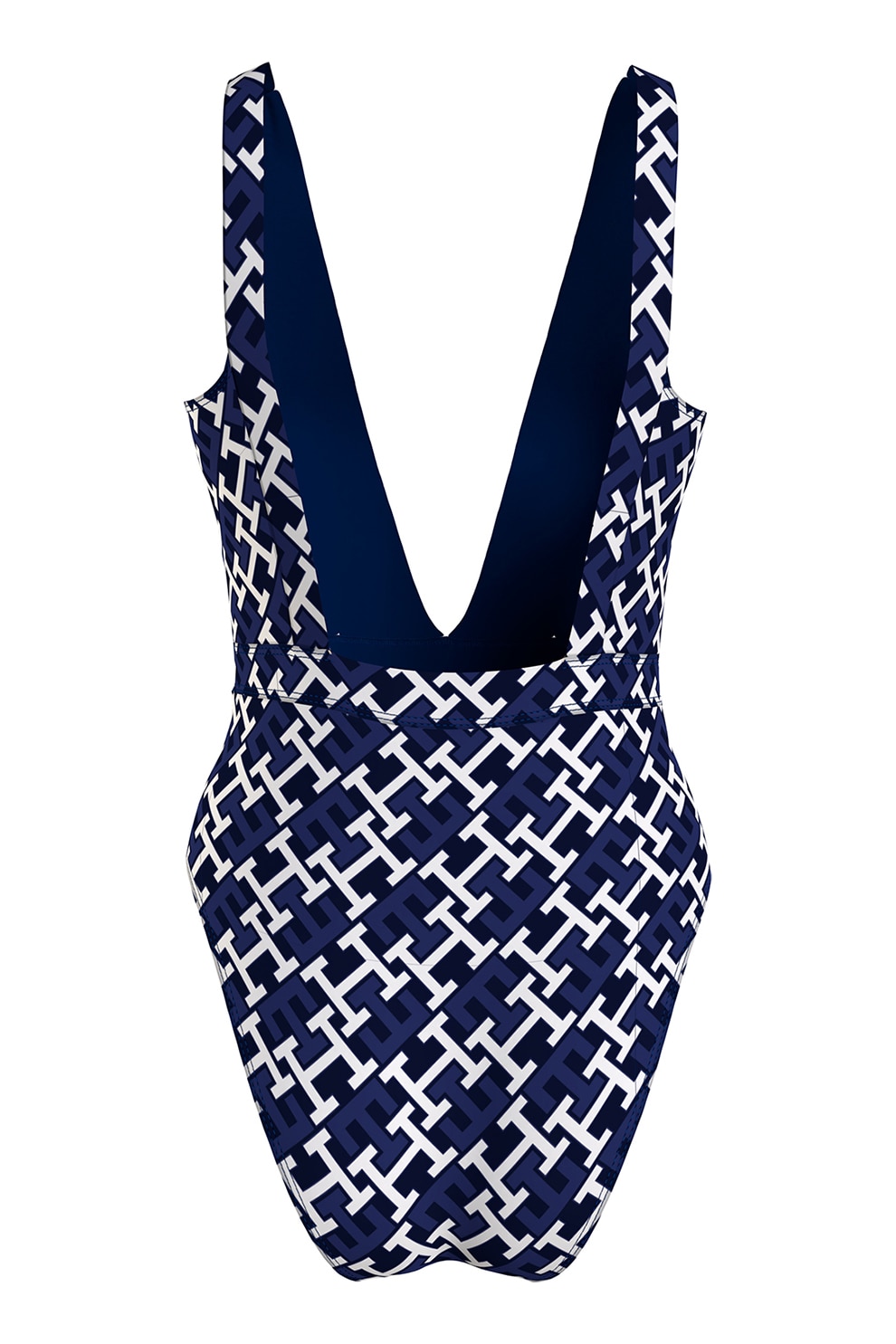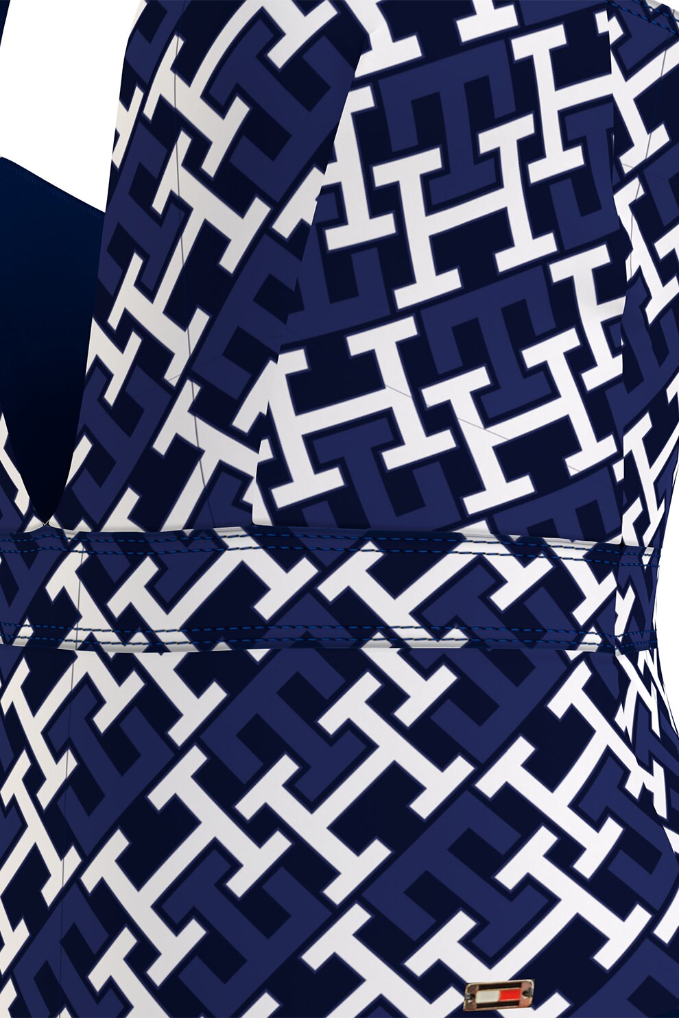 Tommy Hilfiger, Цял бански с принт, Бял/Тъмносин