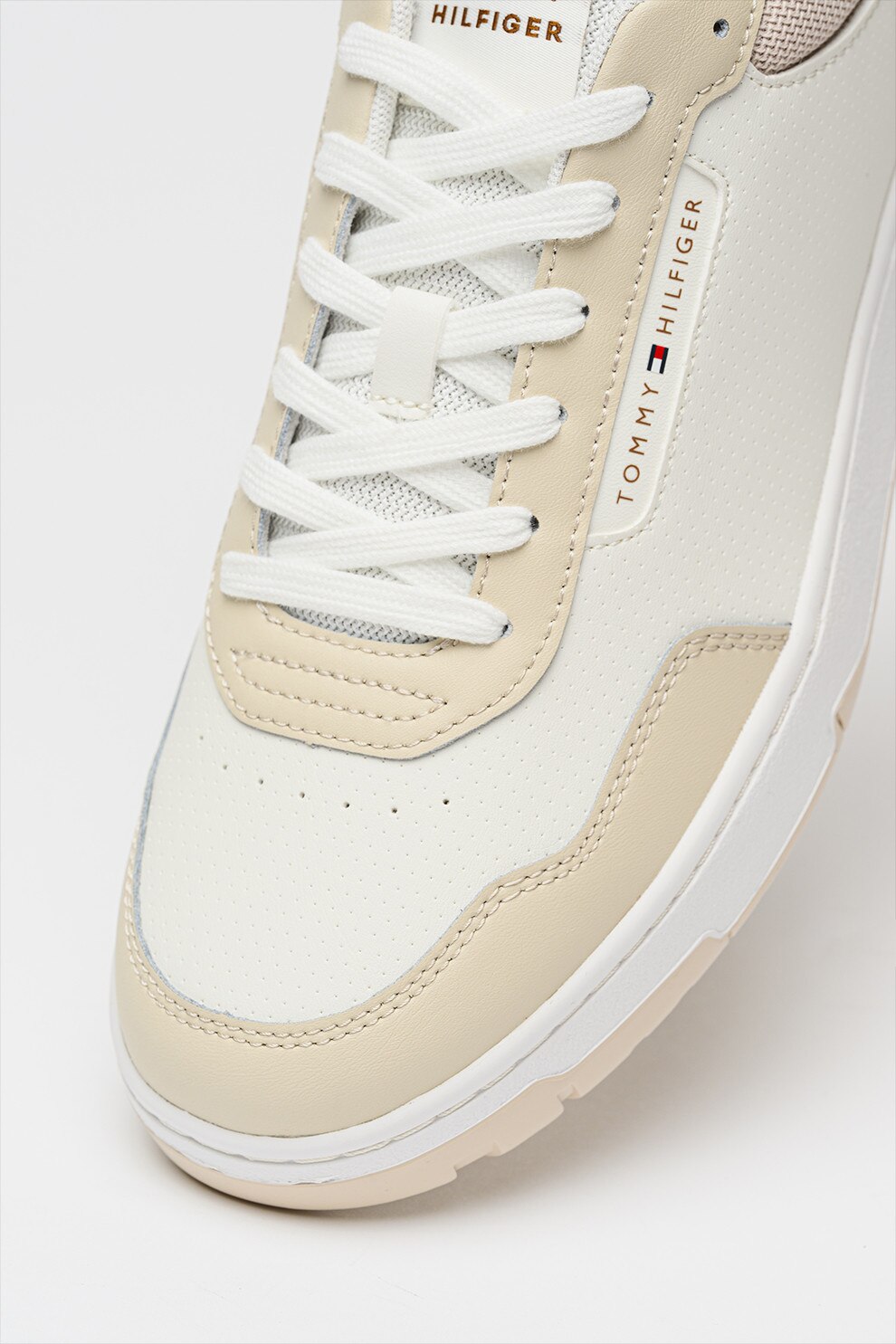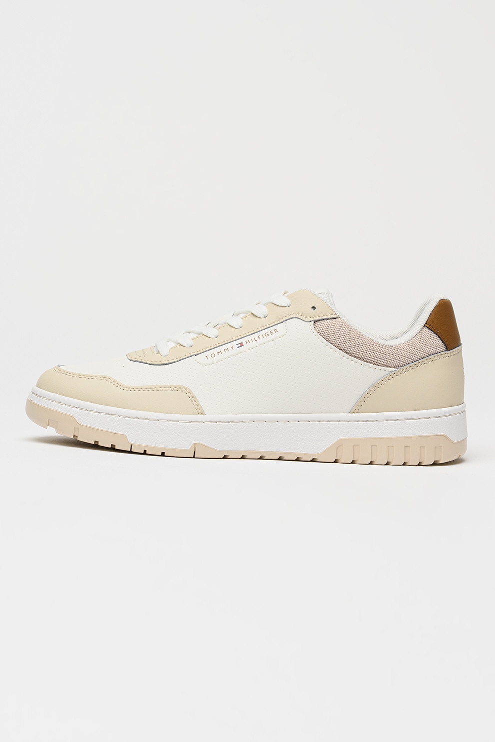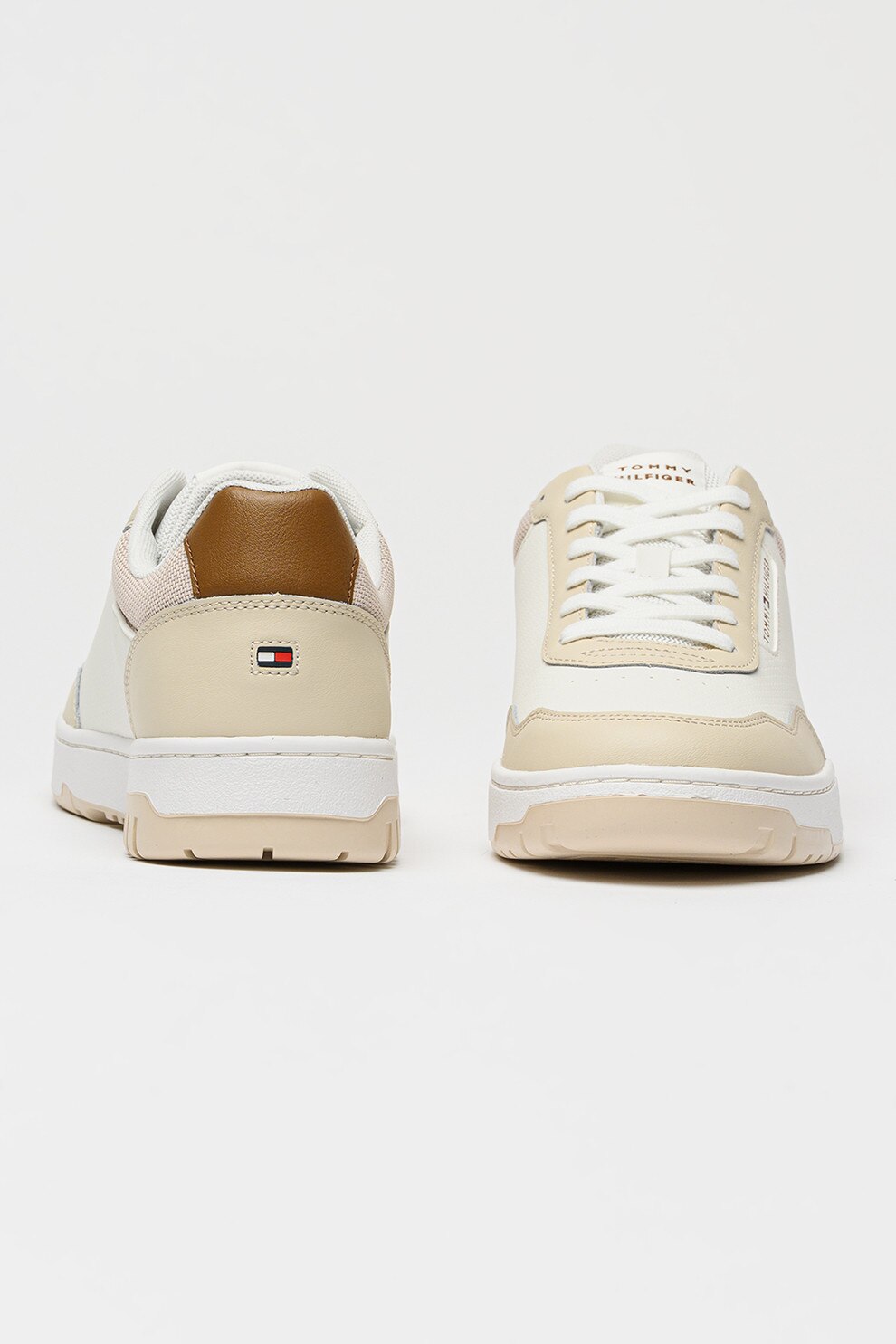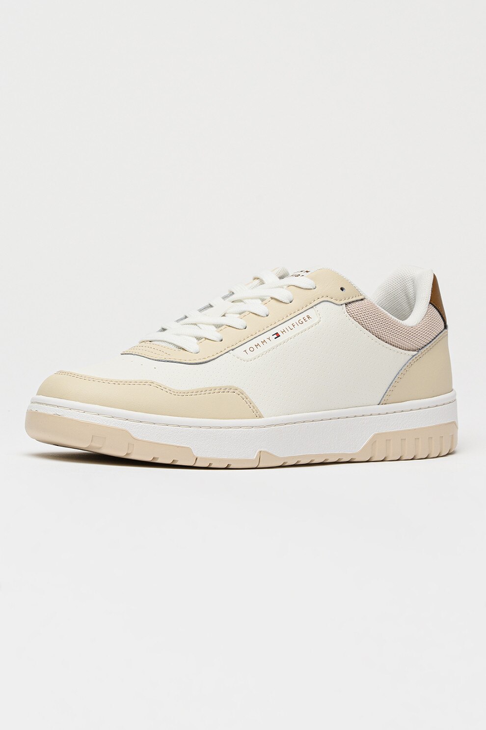 Tommy Hilfiger, Кожени маратонки Basket Core Lite със синтетика, Мръснобял/Светло бежово