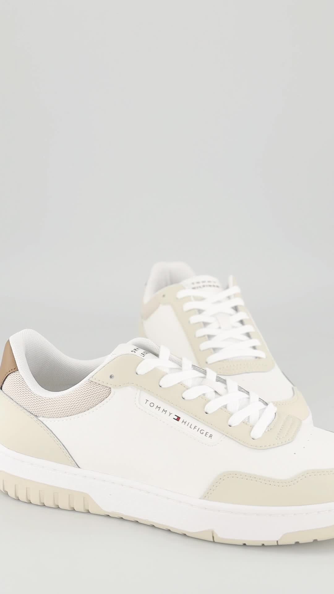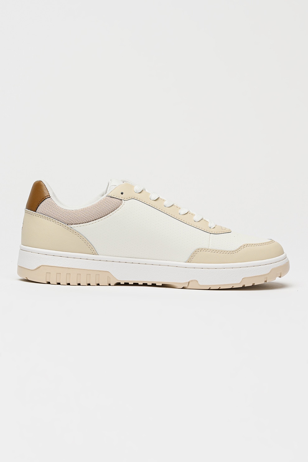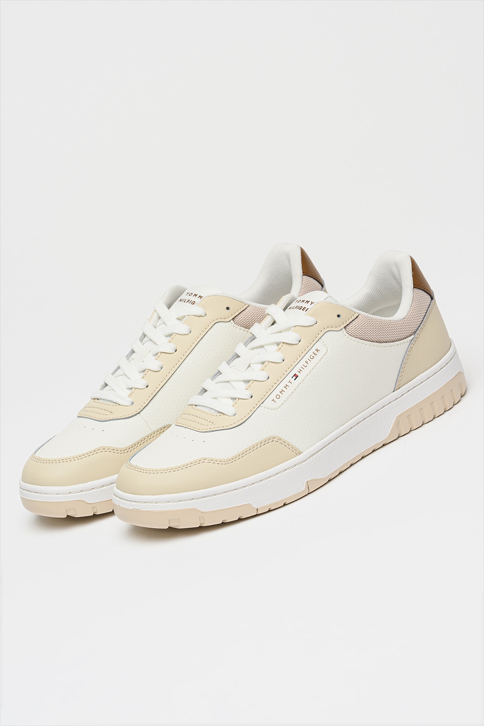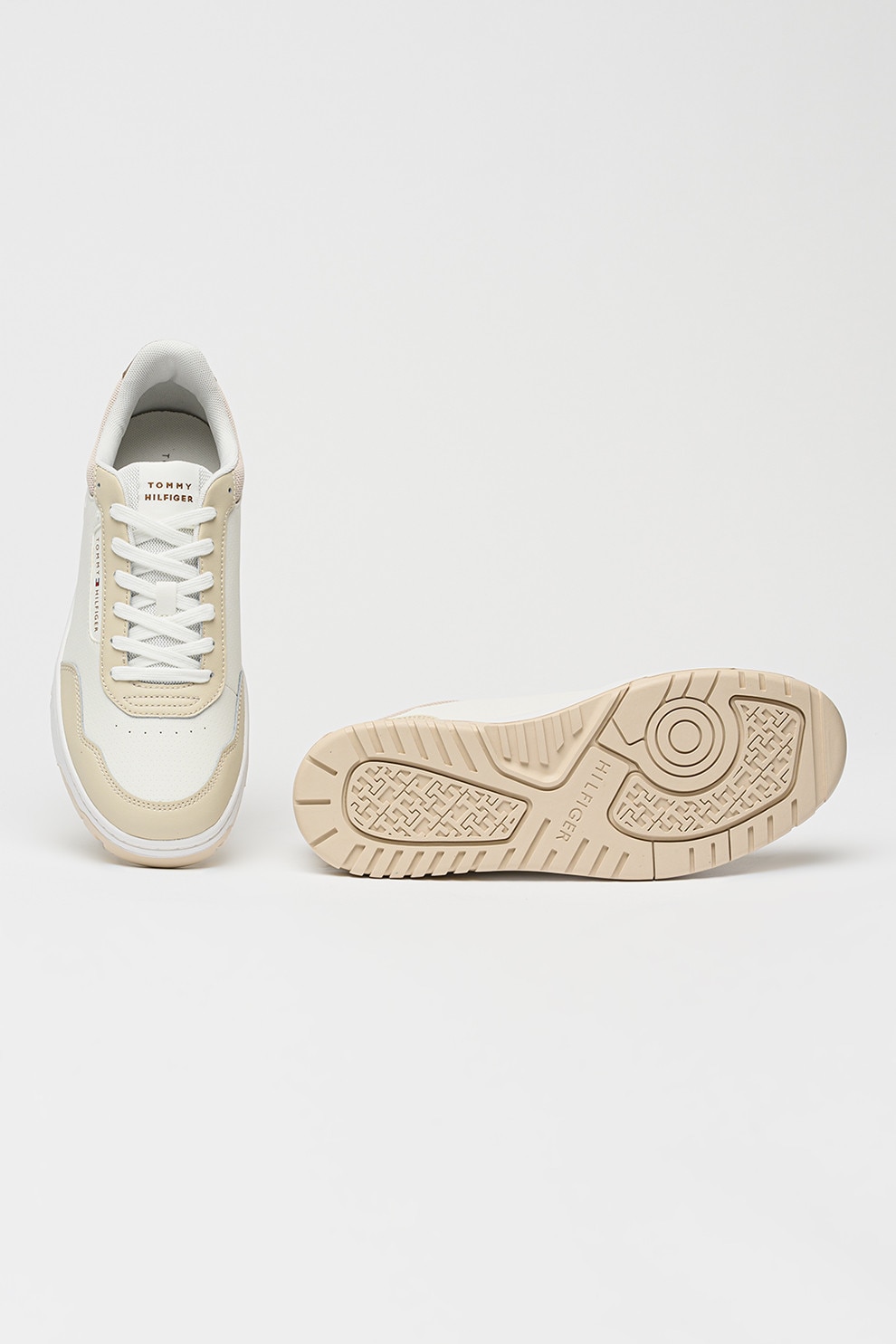Tommy Hilfiger, Кожени маратонки Basket Core Lite със синтетика, Мръснобял/Светло бежово