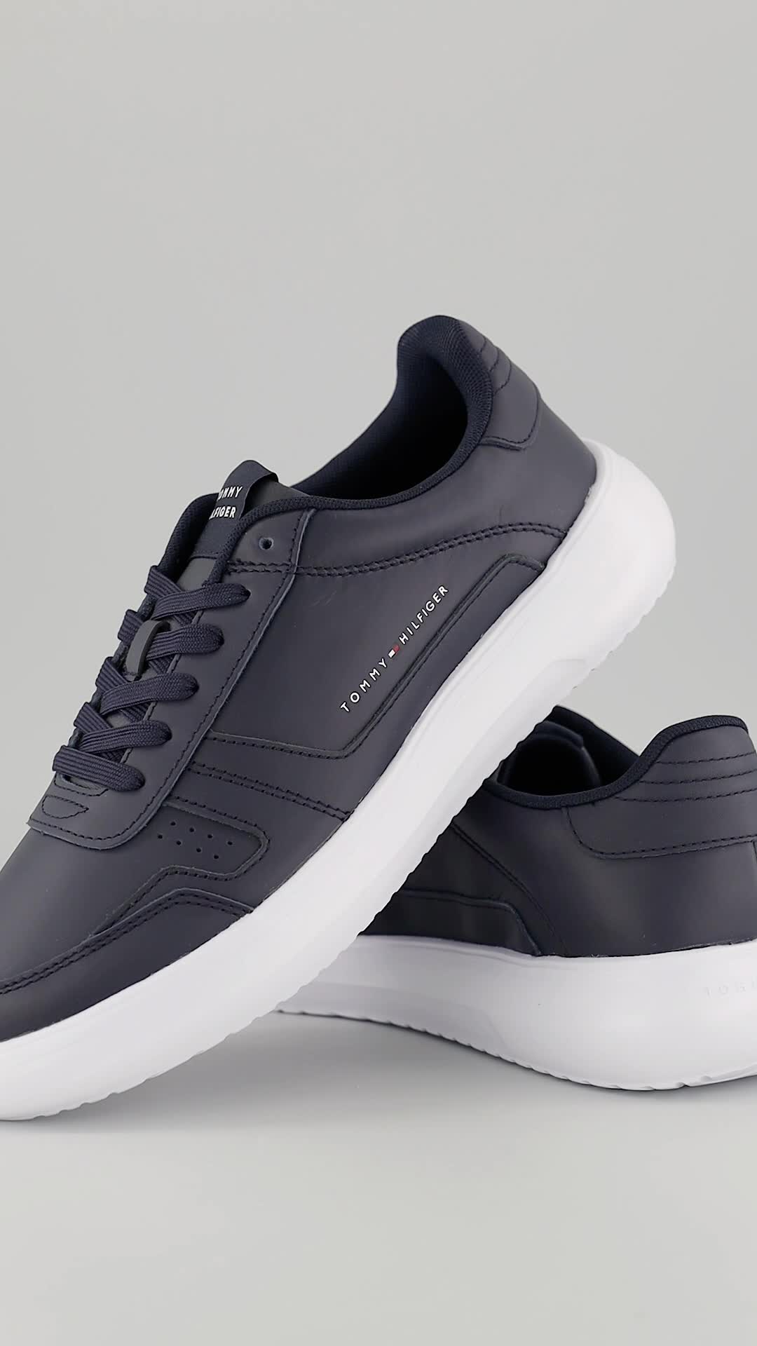 Tommy Hilfiger - Кожени маратонки Modern с лого, Черен/Бял
