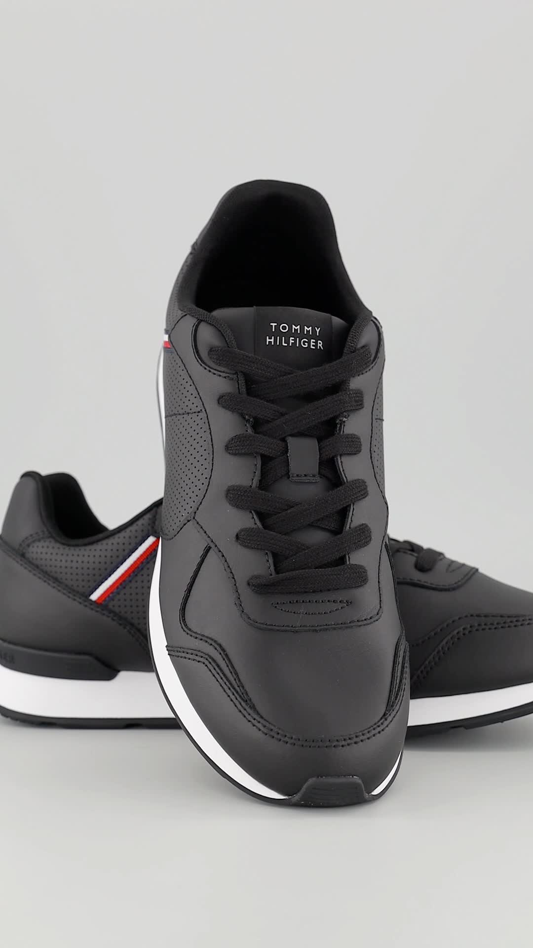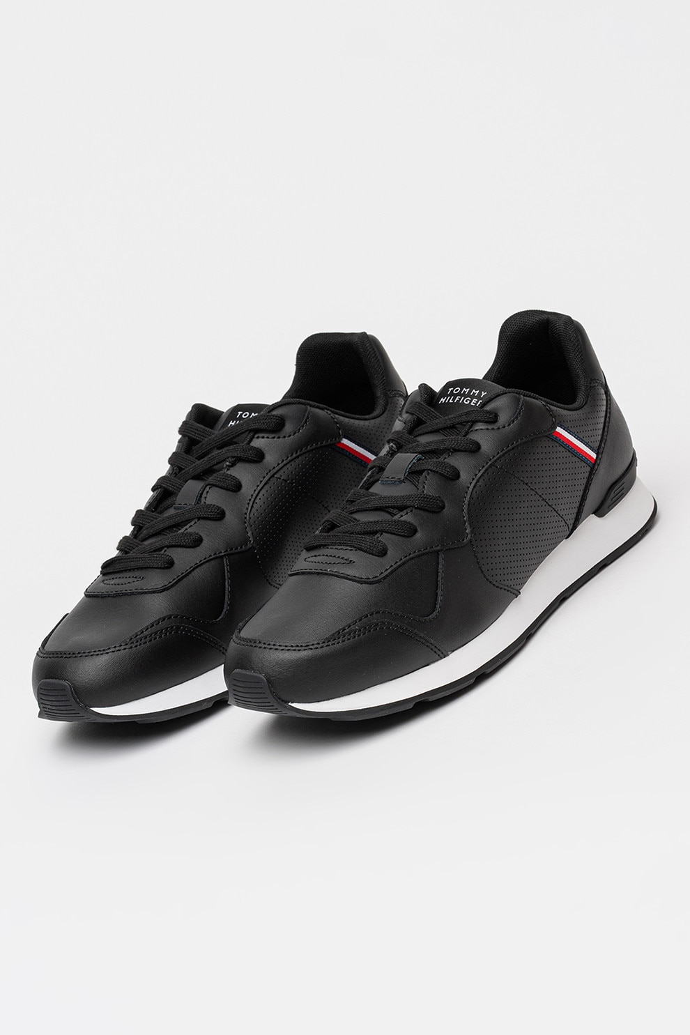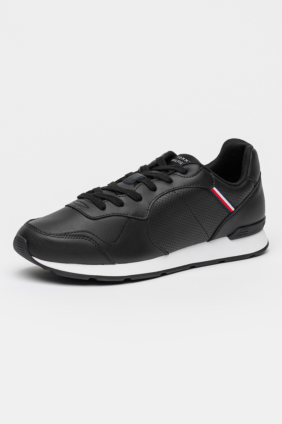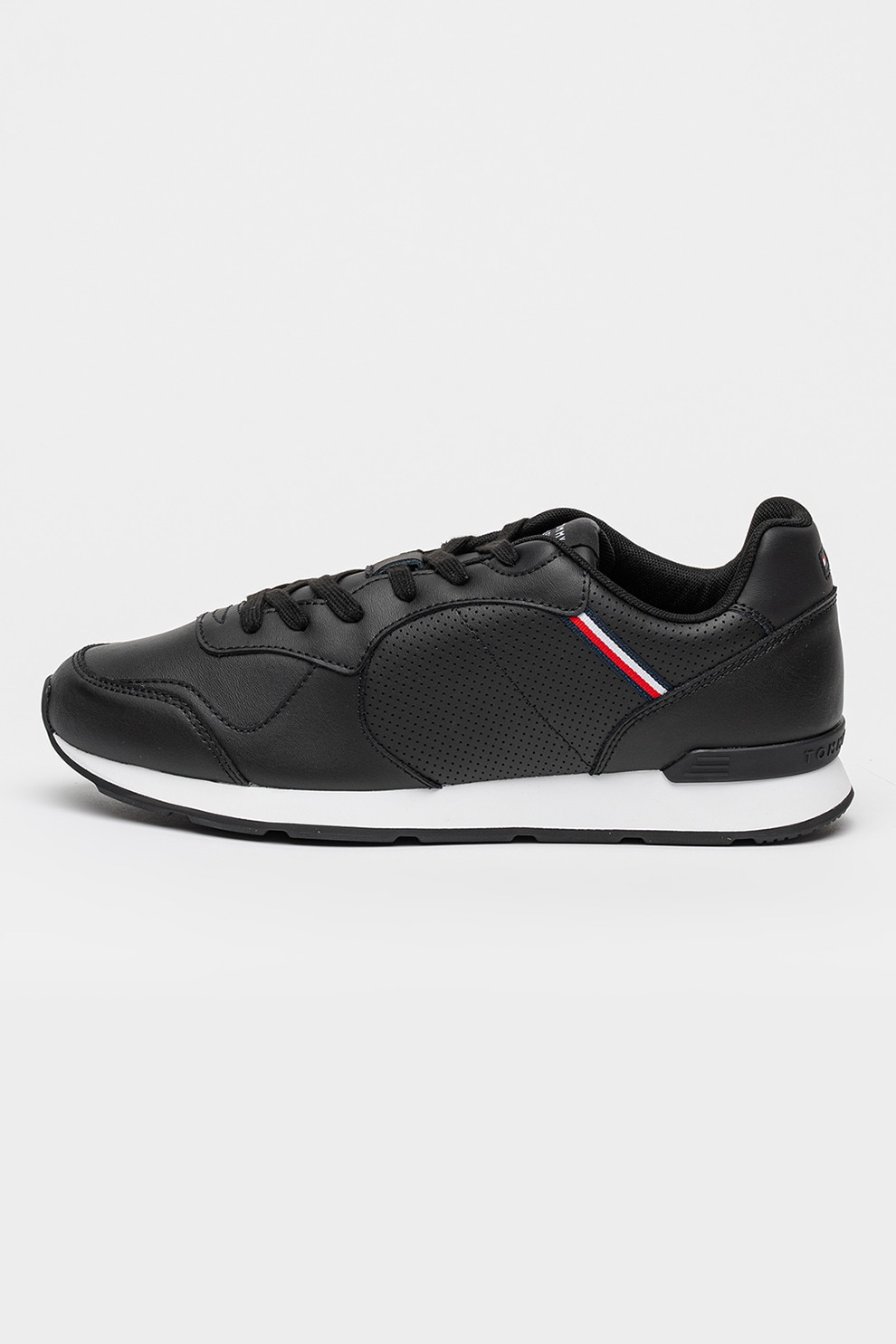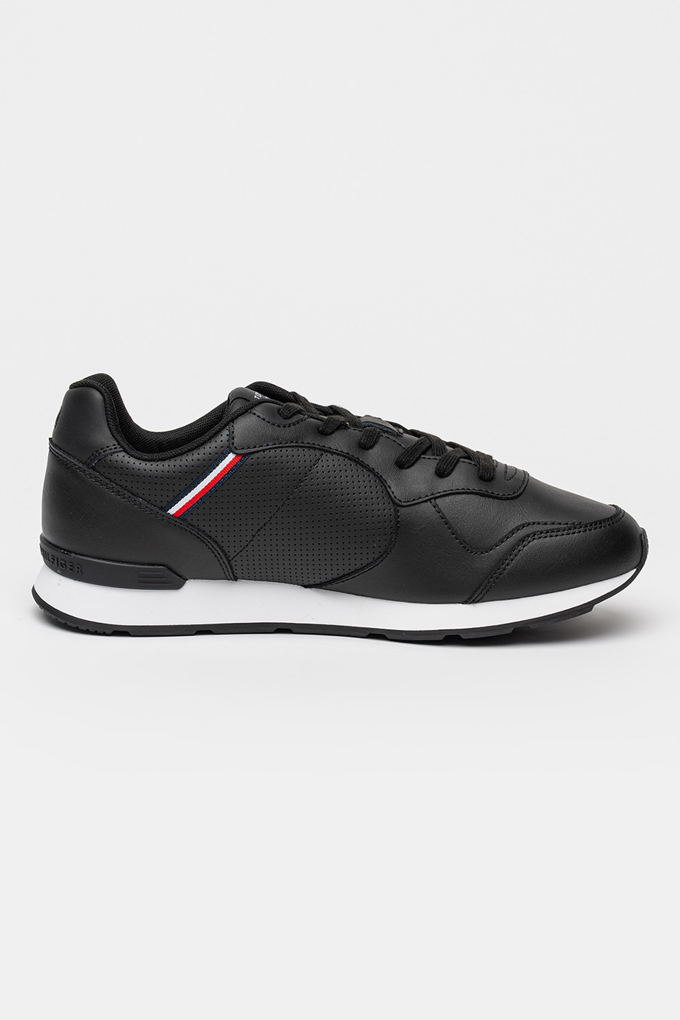 Tommy Hilfiger, Кожени спортни обувки Runner Icon с еко кожа, Черен