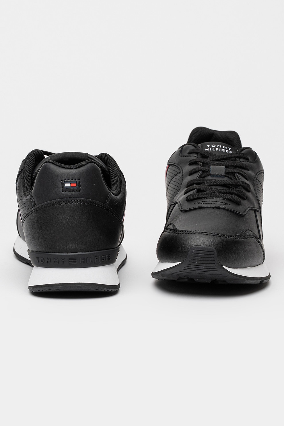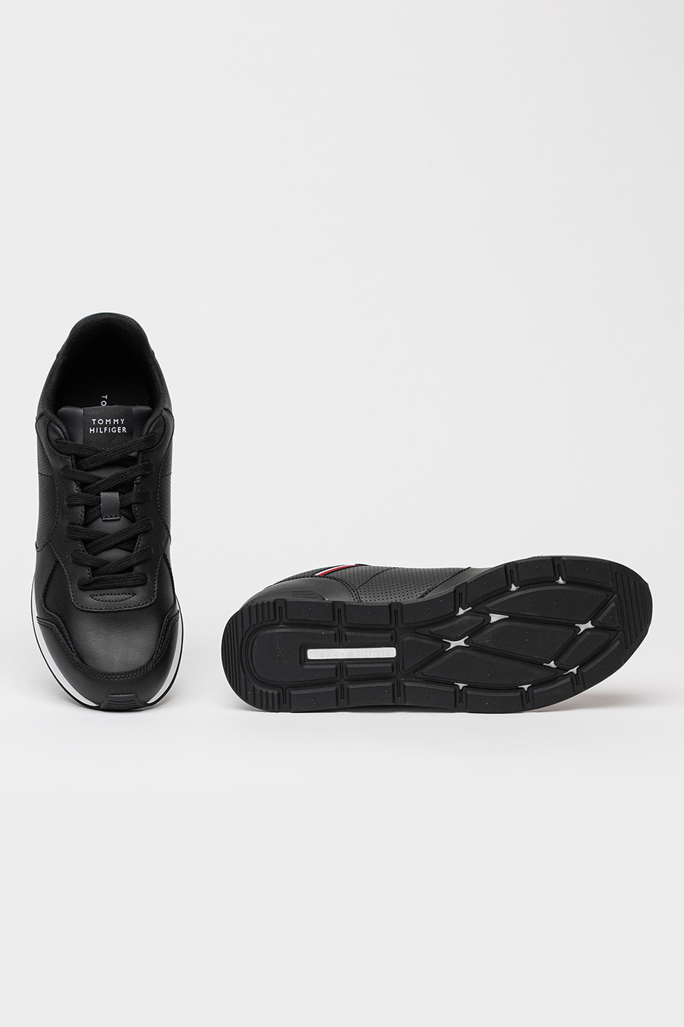 Tommy Hilfiger - Кожени спортни обувки Runner Icon с еко кожа, Черен