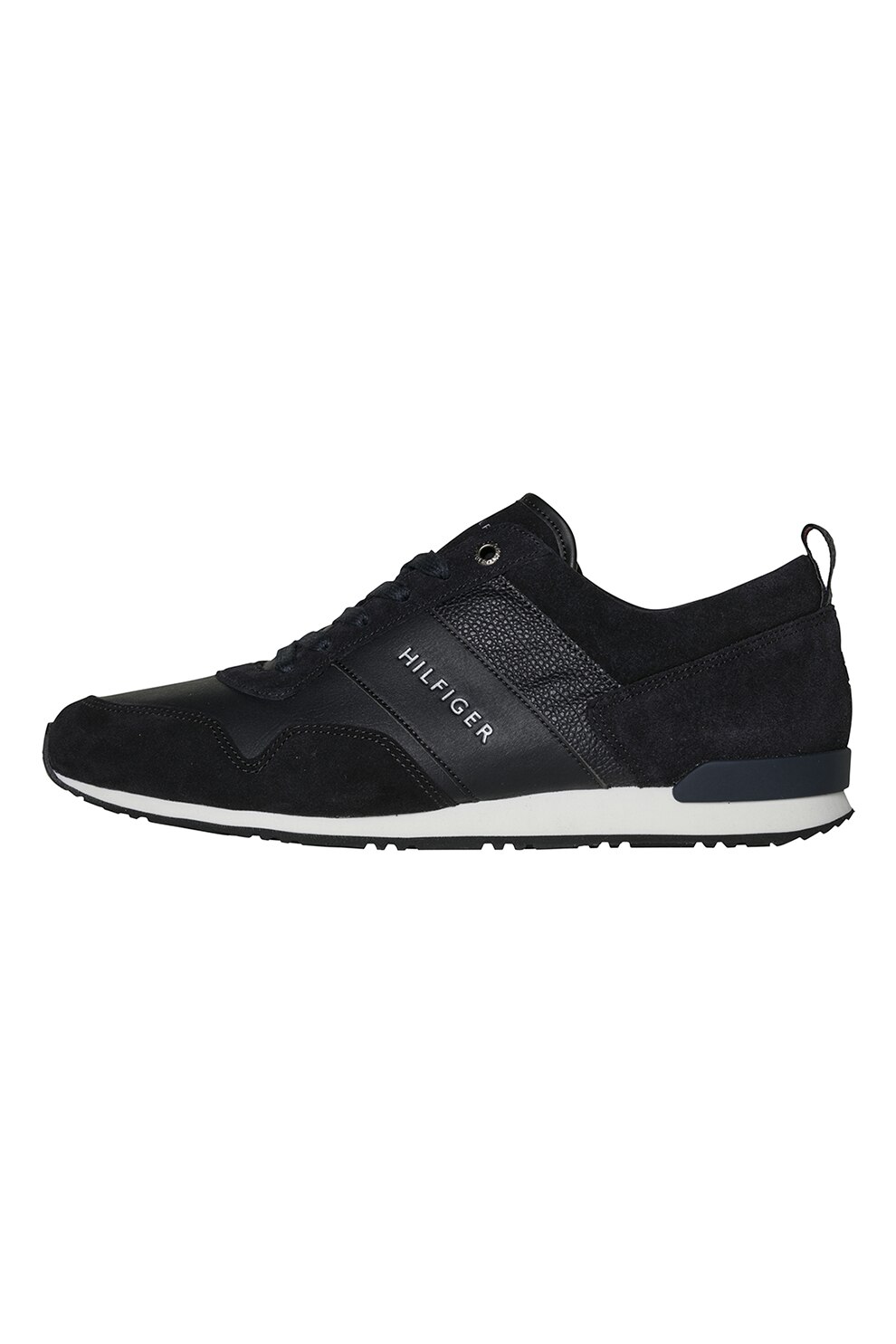 Tommy Hilfiger, Спортни обувки от еко кожа и велур, Бял/Черен