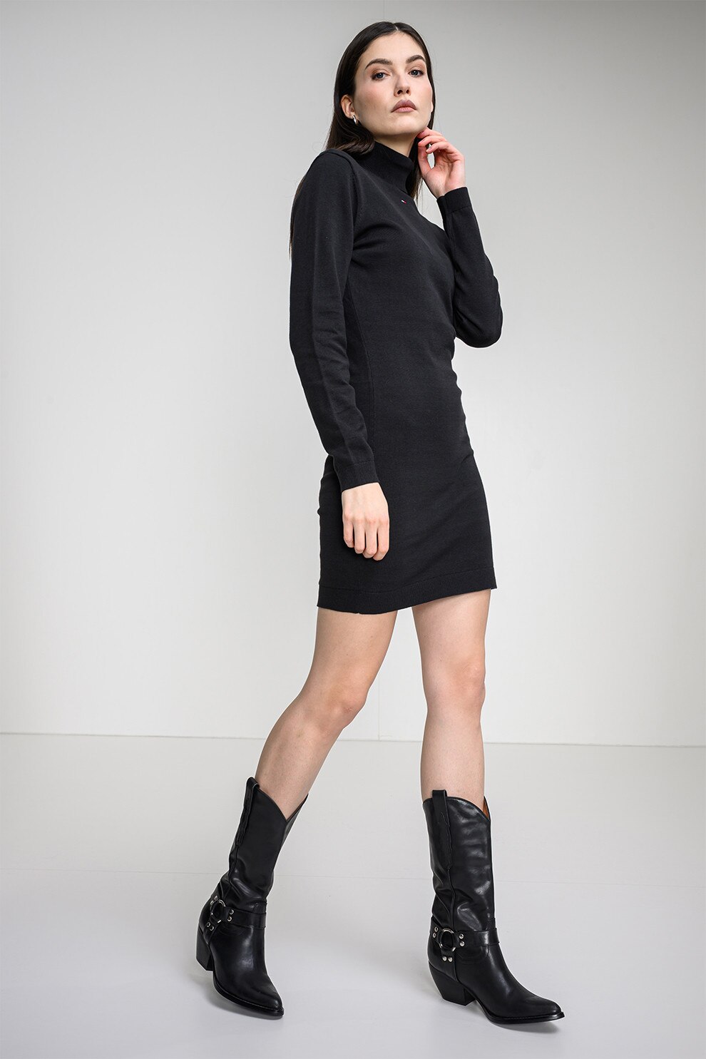 Tommy Jeans - Вталена фино плетена рокля, Черен