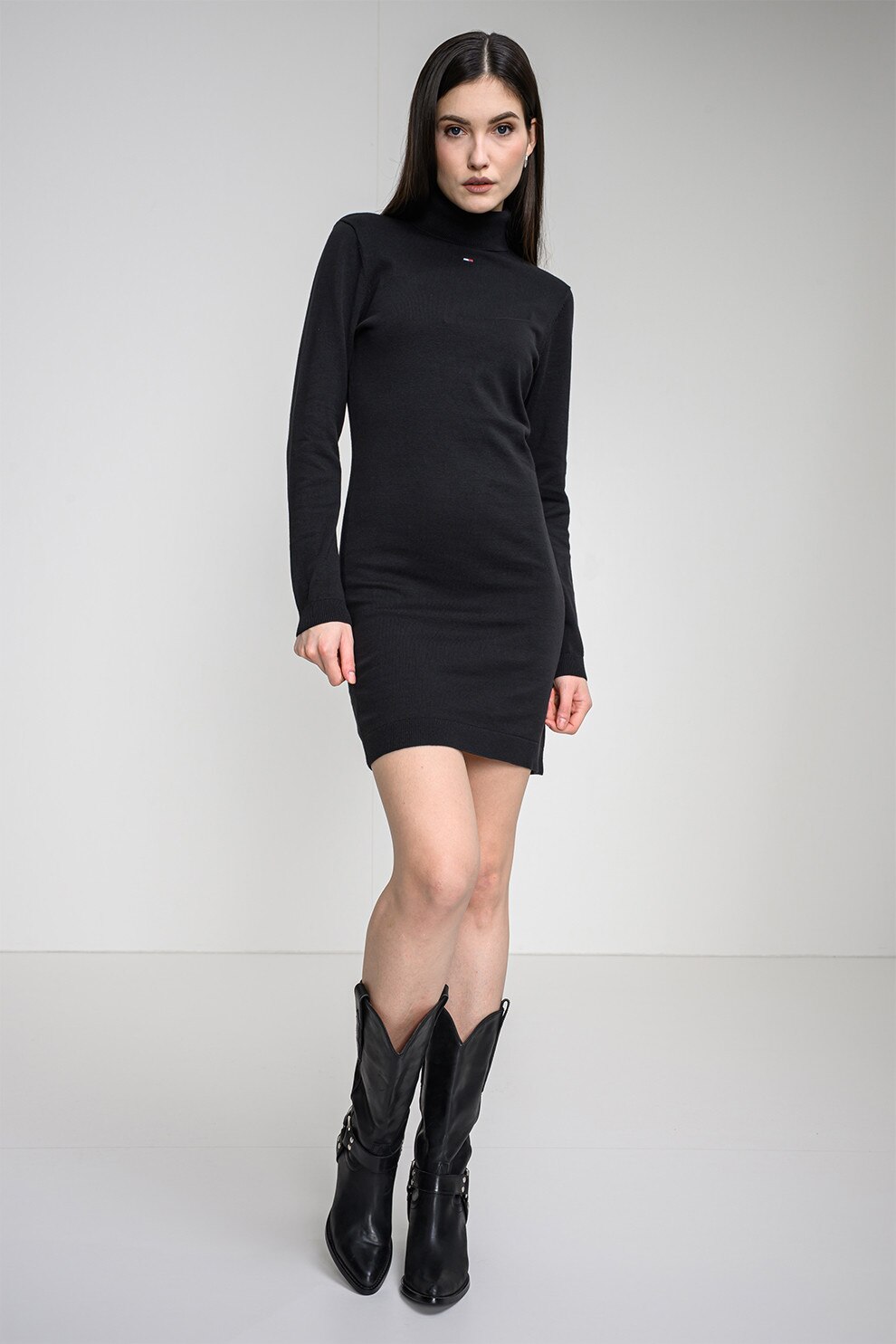 Tommy Jeans, Вталена фино плетена рокля, Черен