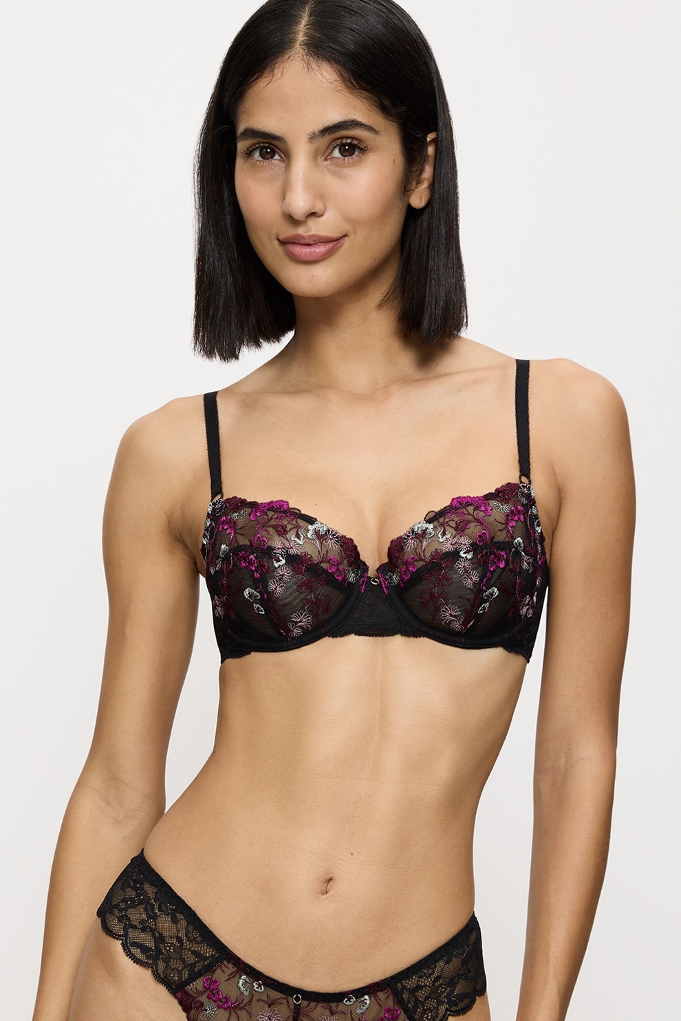 Triumph - Дантелен сутиен с регулируеми презрамки, Черен/Малина/Прозрачен