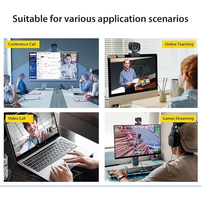 Уеб камера за лаптоп, съвместима с повечето видео приложения, включително Zoom, Skype, Teams, FaceTime, Facebook, Twitter, YouTube, Instagram и др.