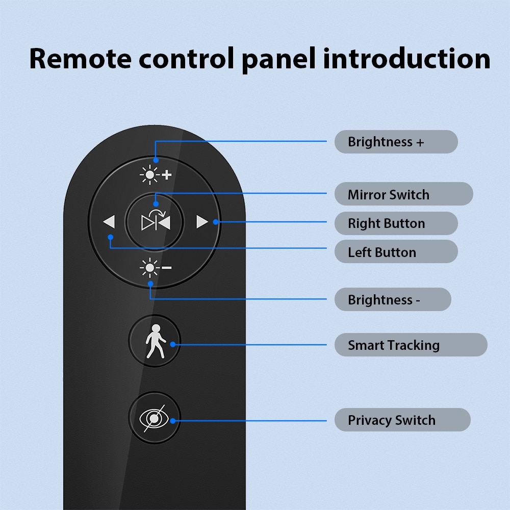Ще ви позволи да отваряте/затваряте дистанционно функцията за автоматично проследяване с ИИ, превключването на конфиденциалността, лесно регулиране на завъртането наляво/надясно, огледалното отразяване и регулиране на яркостта.