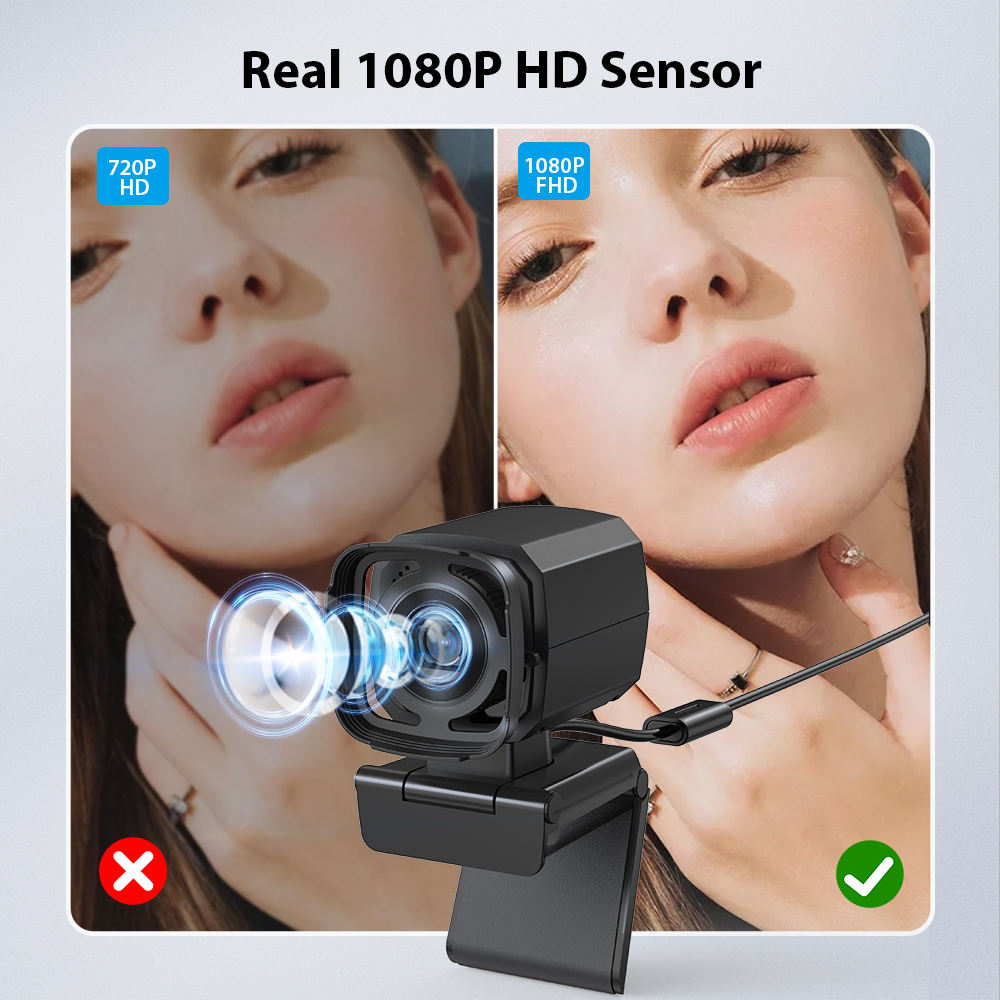 Ясно и добре дефинирано видео: Уеб камерата предлага Full HD 1080P резолюция, осигурявайки кристално чисто видео качество. Справя се добре и при условия на слабо осветление, което я прави отличен избор за всеки, който има нужда от уеб камера с високо качество за видео разговори, конференции, стрийминг или онлайн презентации.