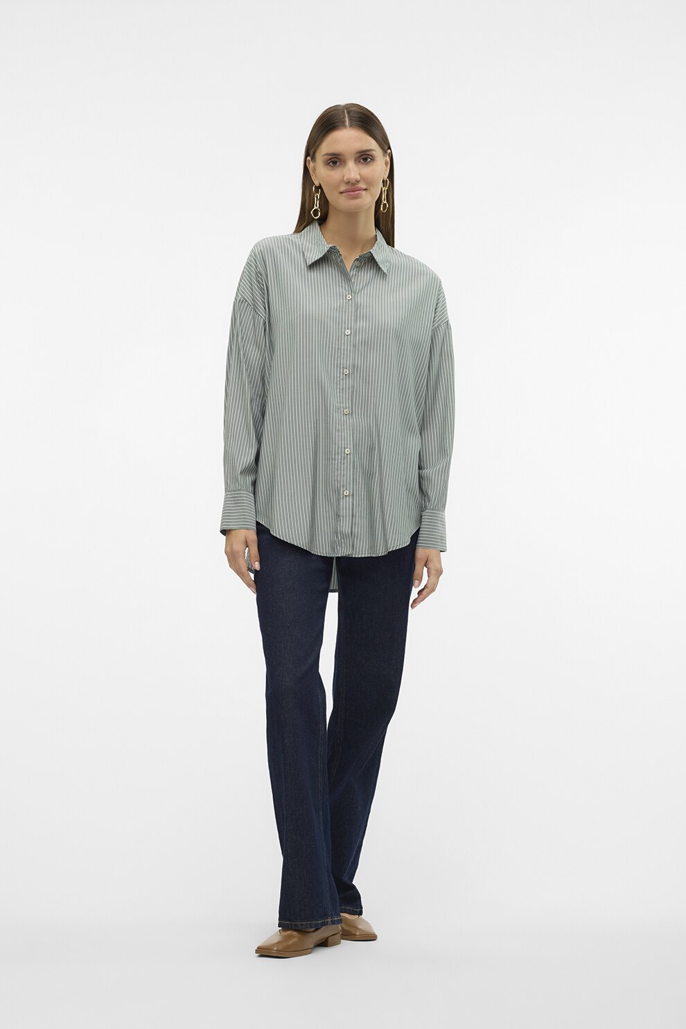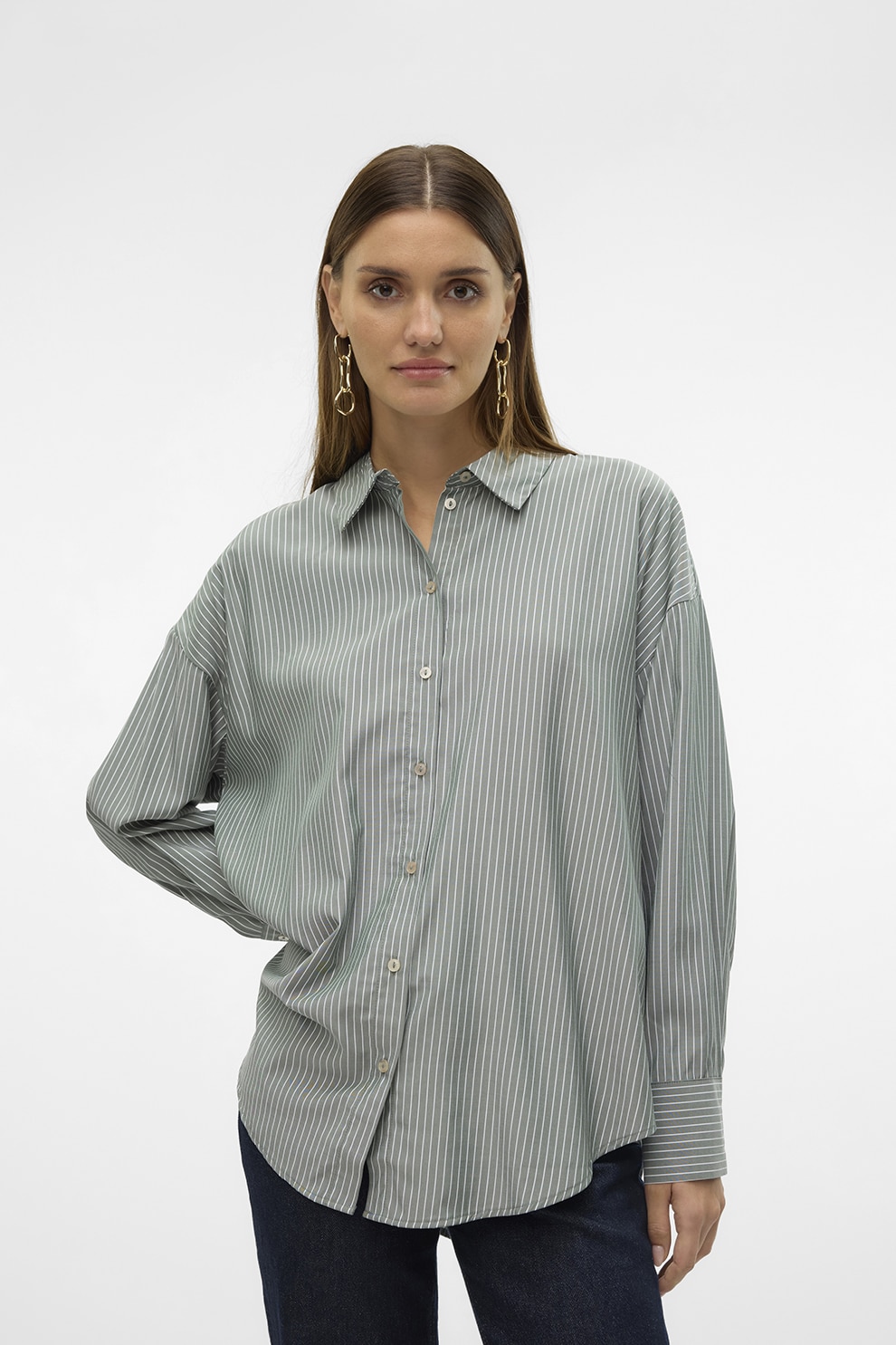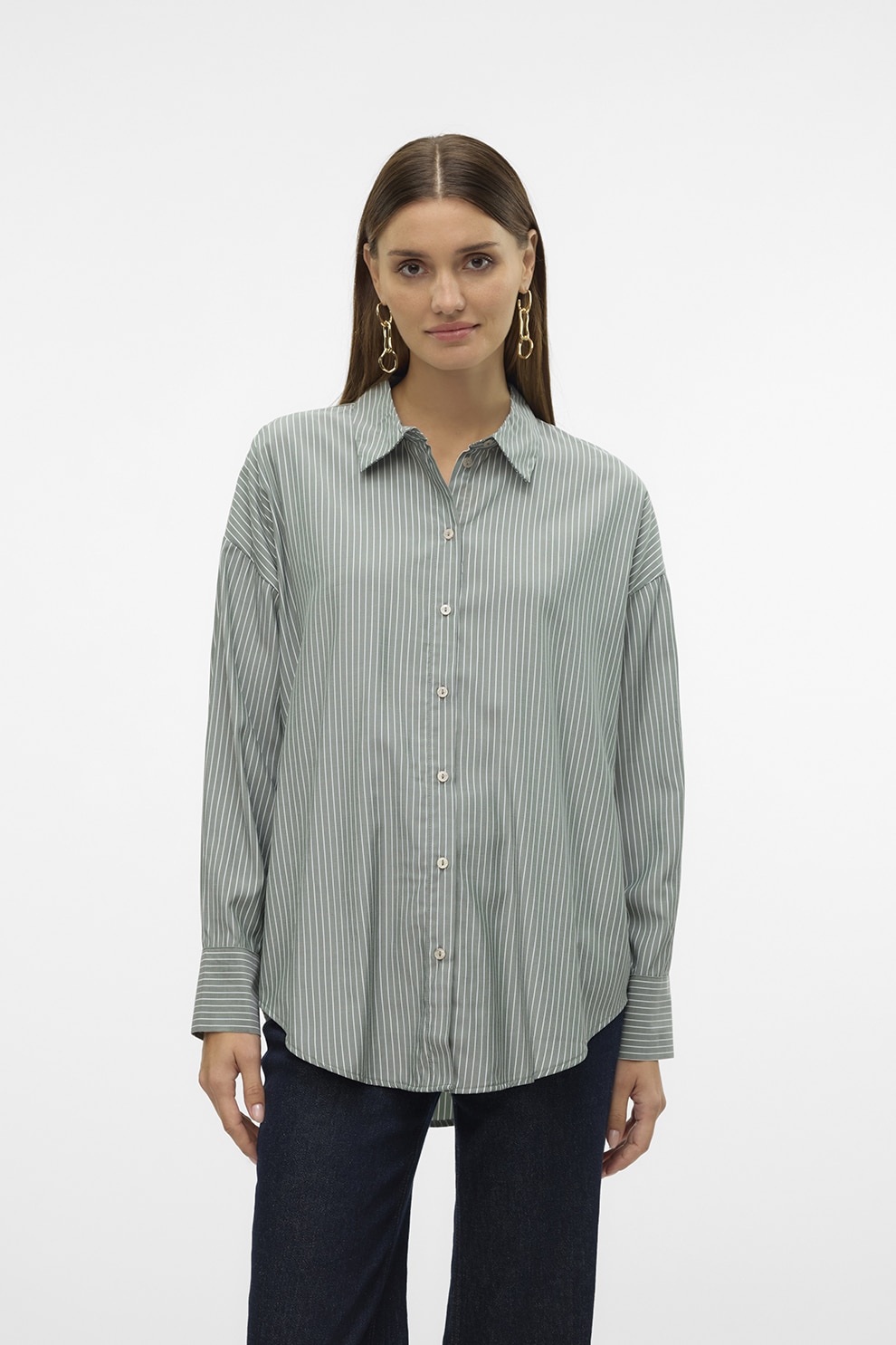 Vero Moda, Свободна риза, Бял/Папратово зелено