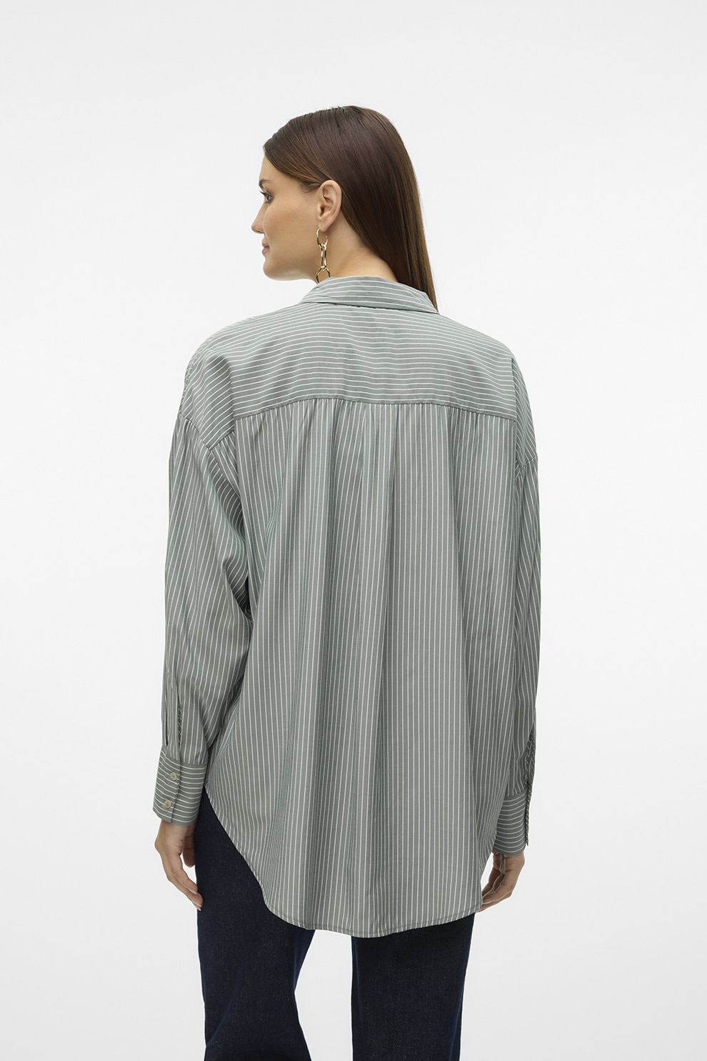 Vero Moda - Свободна риза, Бял/Папратово зелено