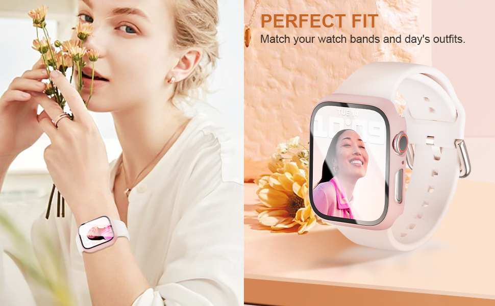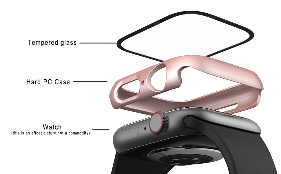 Защитен калъф за Apple Watch, ултратънък, устойчив на надраскване, със защитно фолио от закалено стъкло, 42 мм, розов
